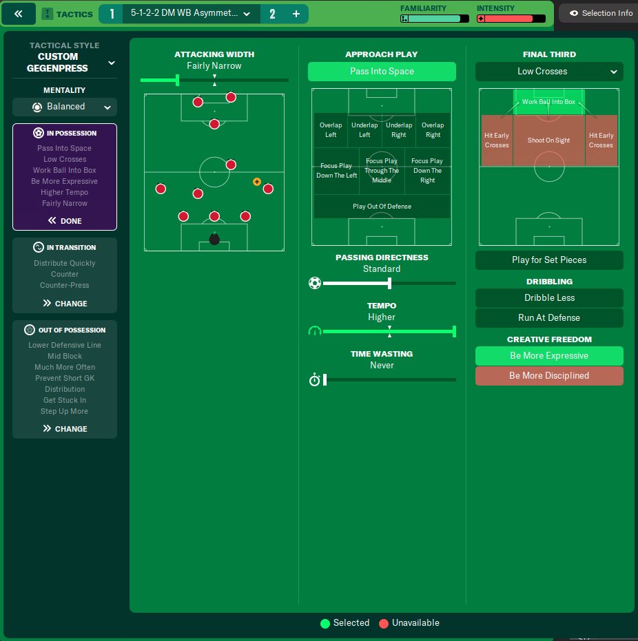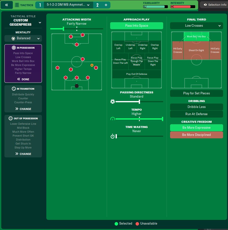The main goal of this tactic was to create a strong defensive base while also having a good counter-attacking potential. I used standard passing with a higher tempo and pass-into-spaces instructions. I tried shorter passing but that didn't prove to be as effective with the pass-into-spaces instruction and standard passing felt much more balanced. A balanced mentality worked wonders and created very good defensive and attacking results. Also be more expressive because I had some very creative midfielders and forwards who could utilize this to great effect.