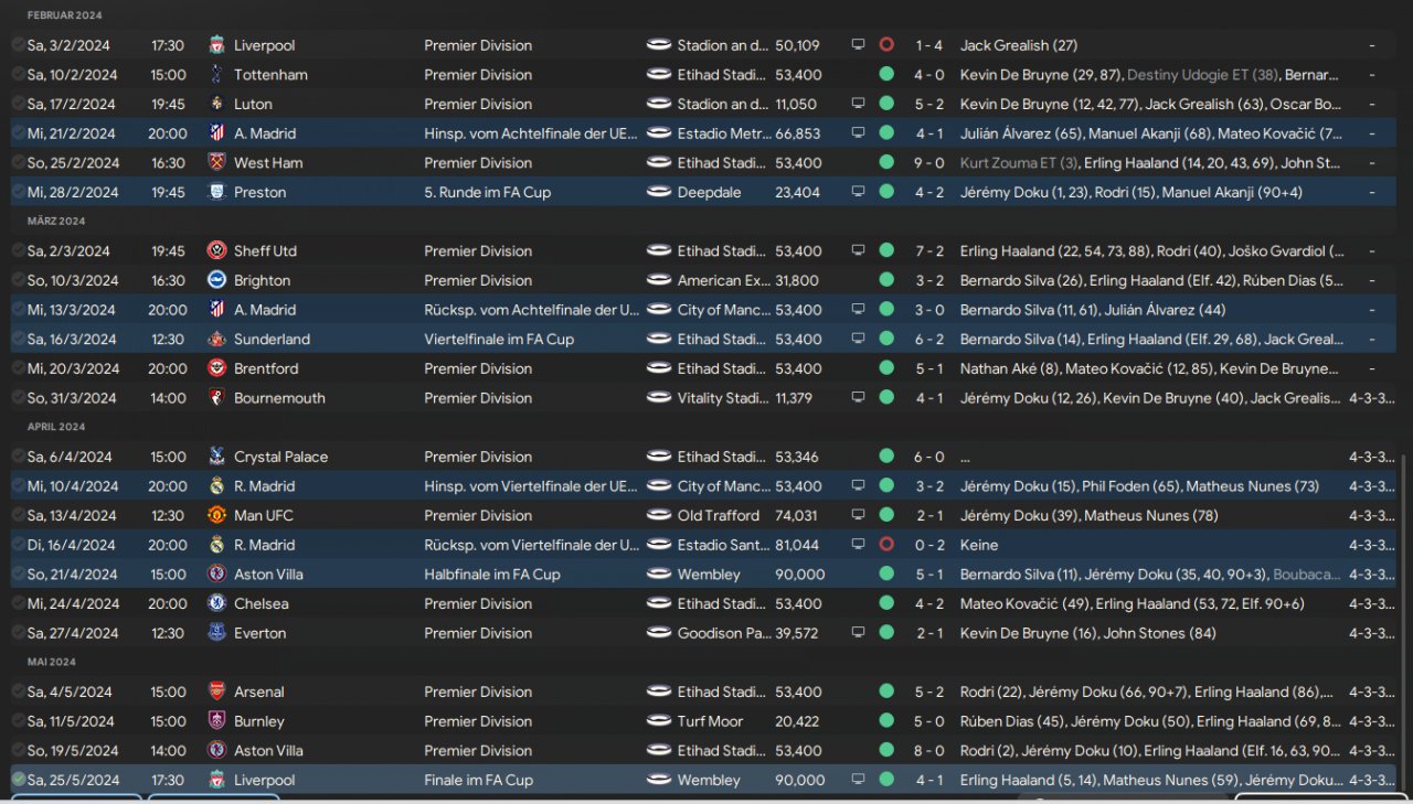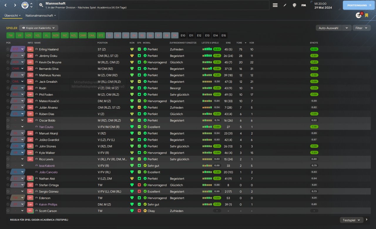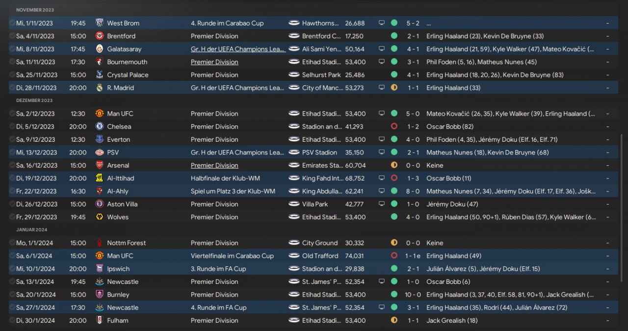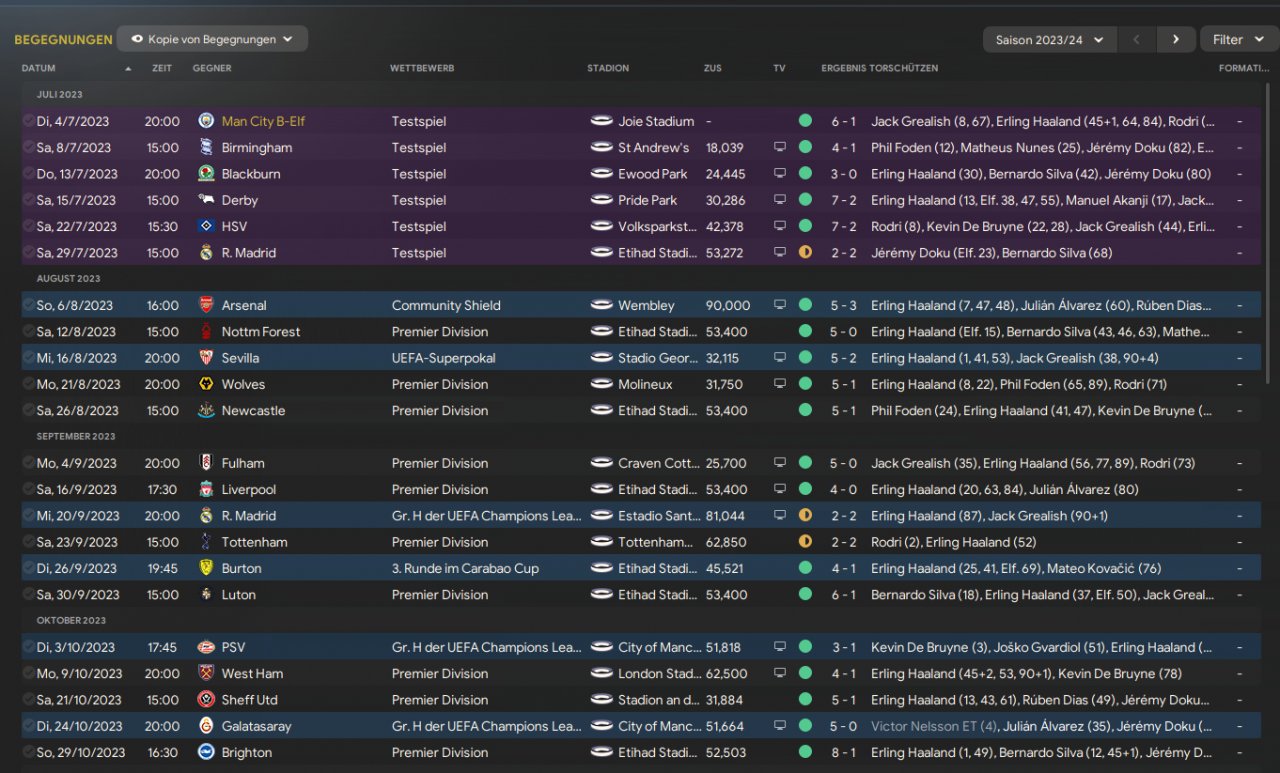 I used 2 Mezallas. First try of an own 4-3-3 tactic. Haaland scores 75 goals in 50 games. Goal Difference of +123