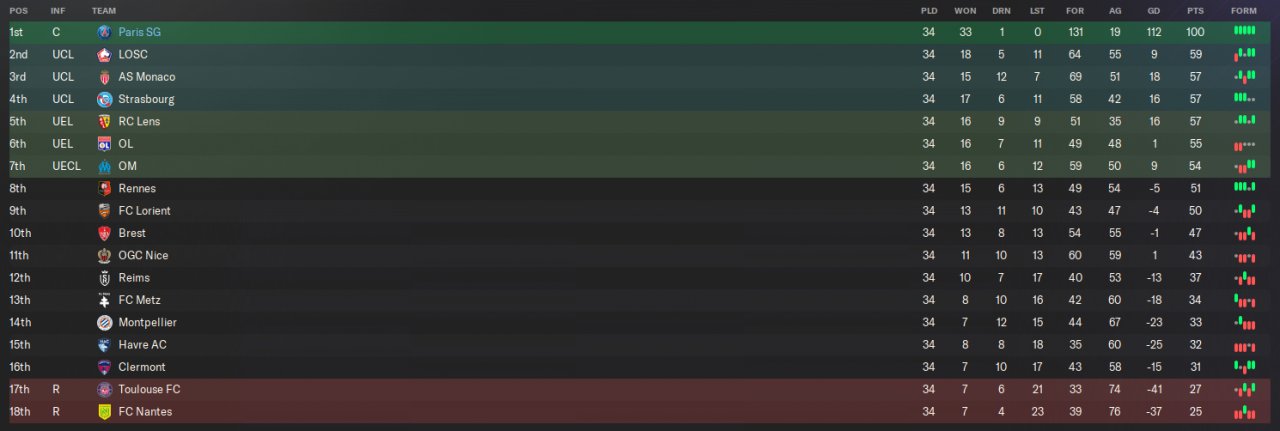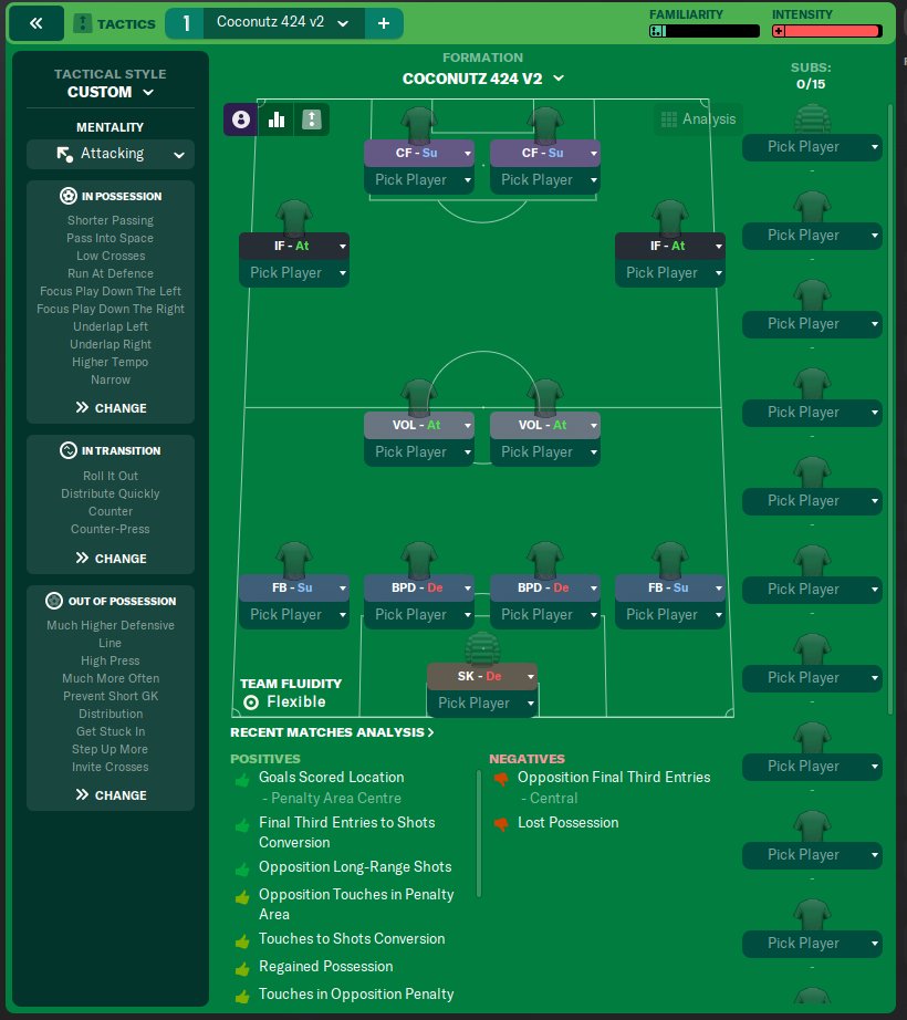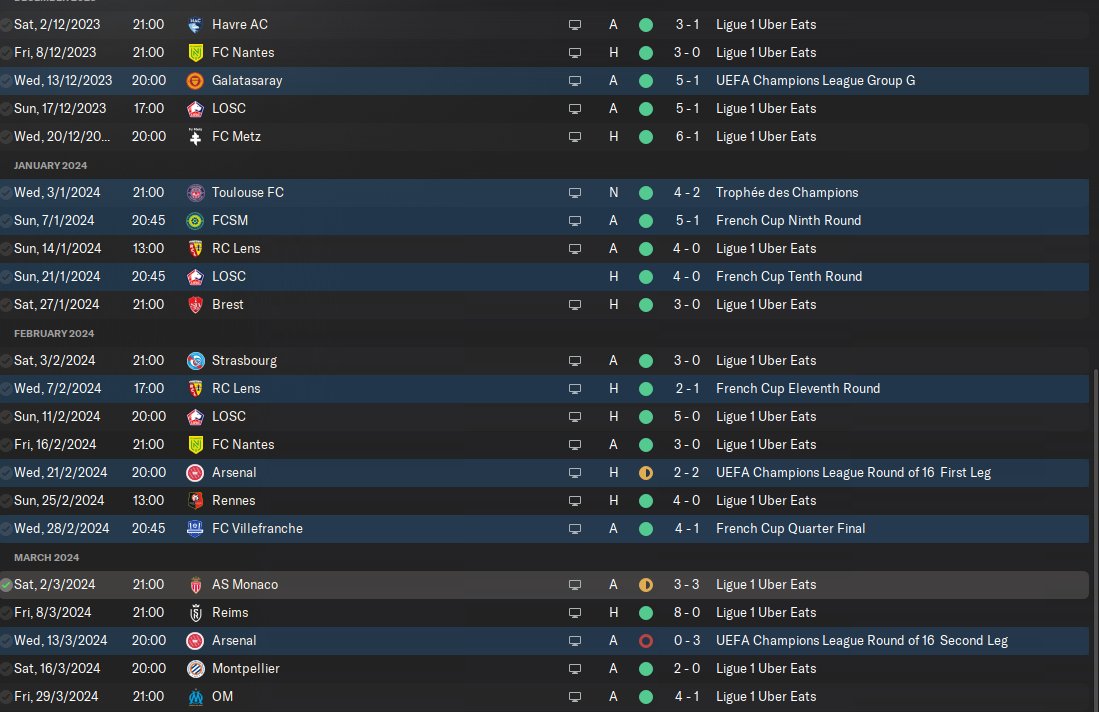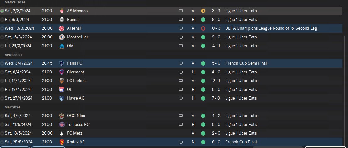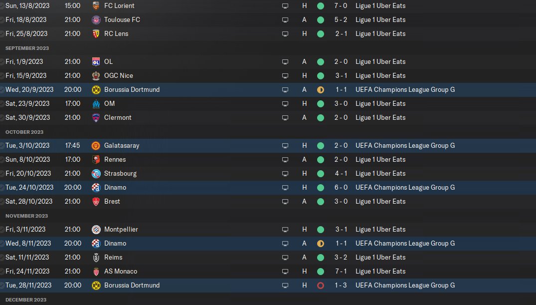 almost won every game in league apart from one draw , 0 defeats , changed to attacking and narrow and PF to CF