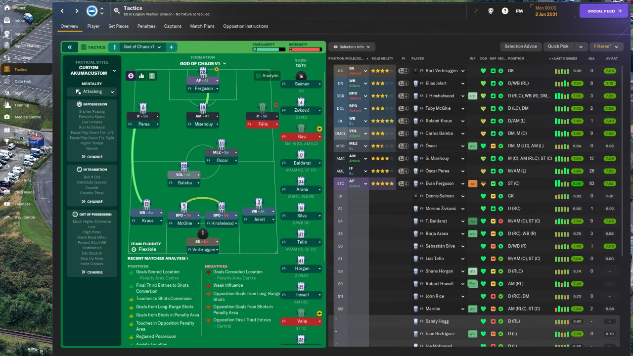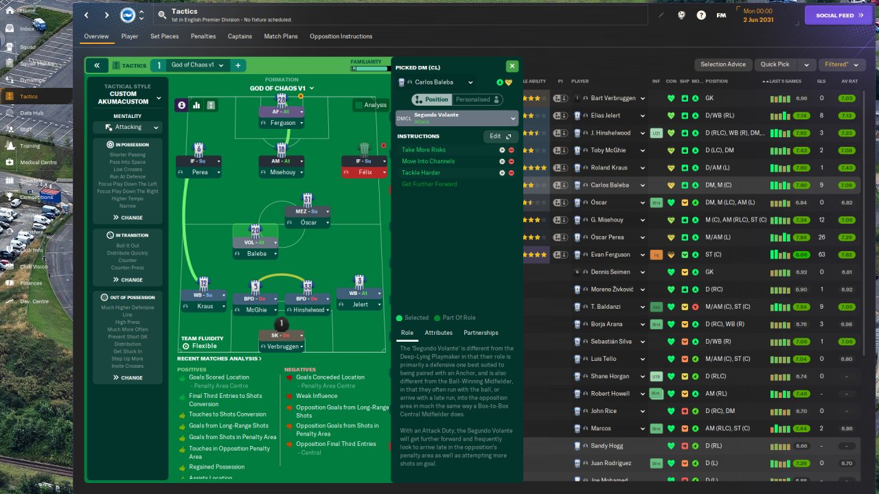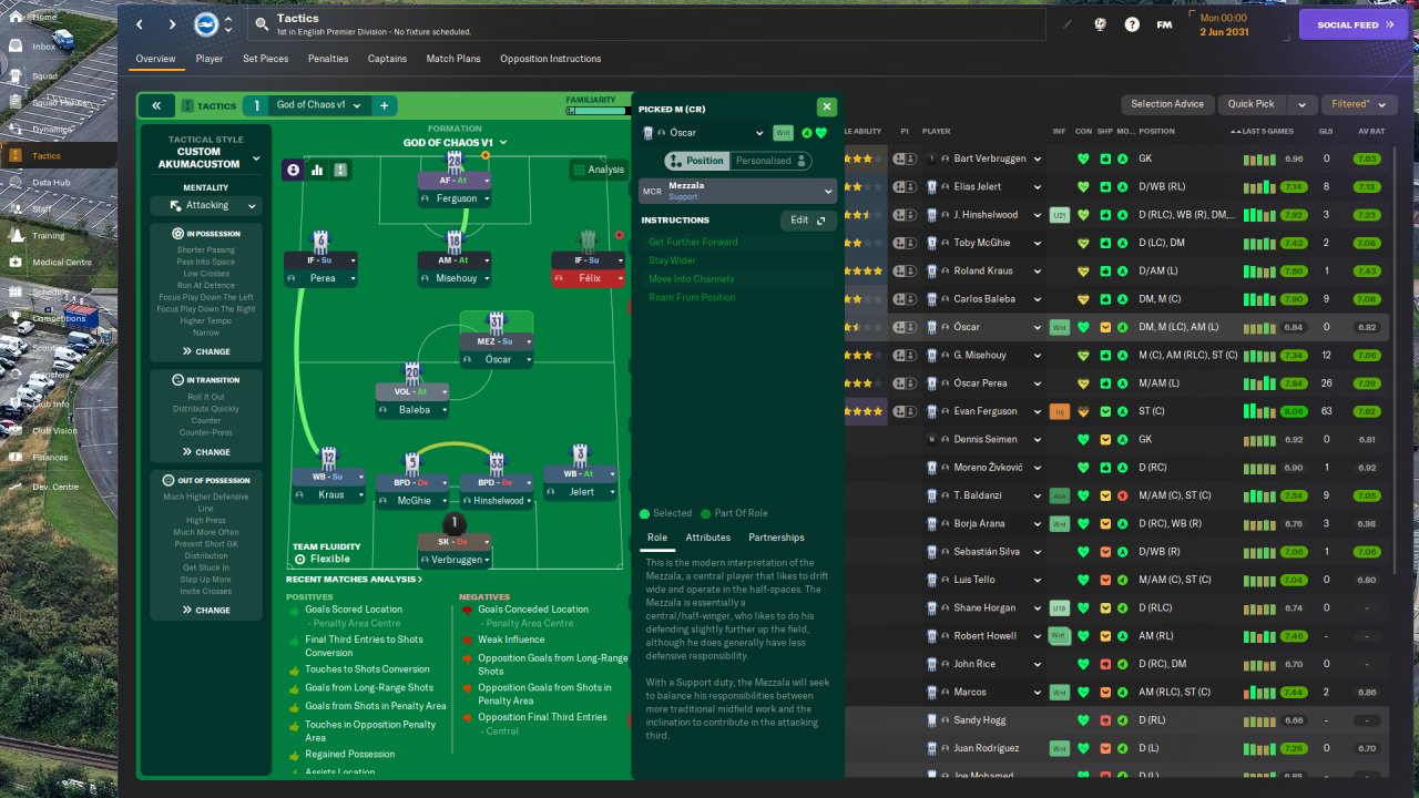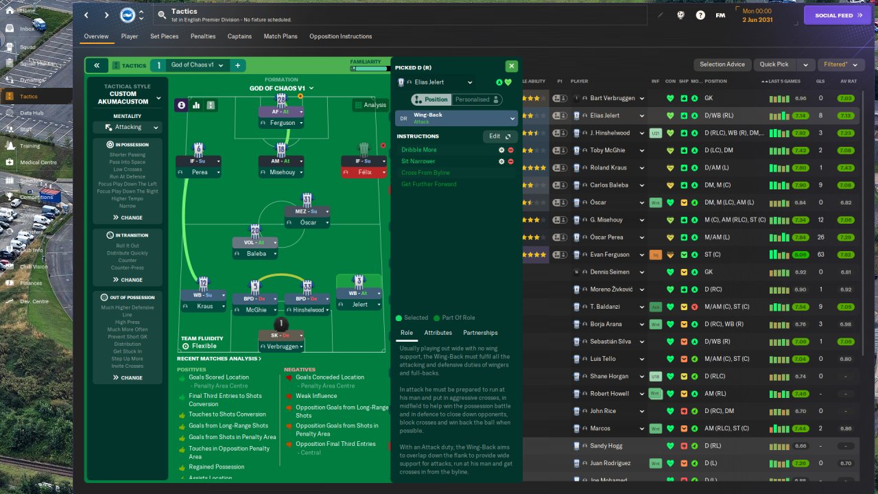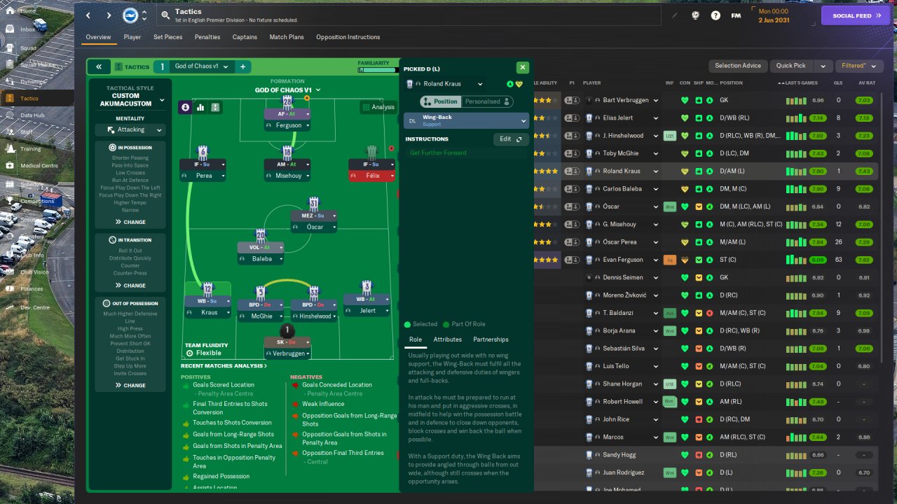 The full back on attack is very similar to how the wing back on attack performs. I'm not on my computer at the moment so can't look at the difference in PIs but the PIs set on the FB push them to act more like wingbacks so changing the role to wingback shouldn't have too much of an impact. The DM role in my opinion is the best role for the defensive midfield especially covered with another DM. I've checked out other role combinations and they weren't as effective as the double pivot DM. In regards to AP role in AM I'm not a fan. Something doesn't seem right with it even alongside an AF. The game may tell that role is more effective along with another role but I think it's been proven for a while now that AM and AF are most effective. Thank you for the kind words. Appreciate it 👍