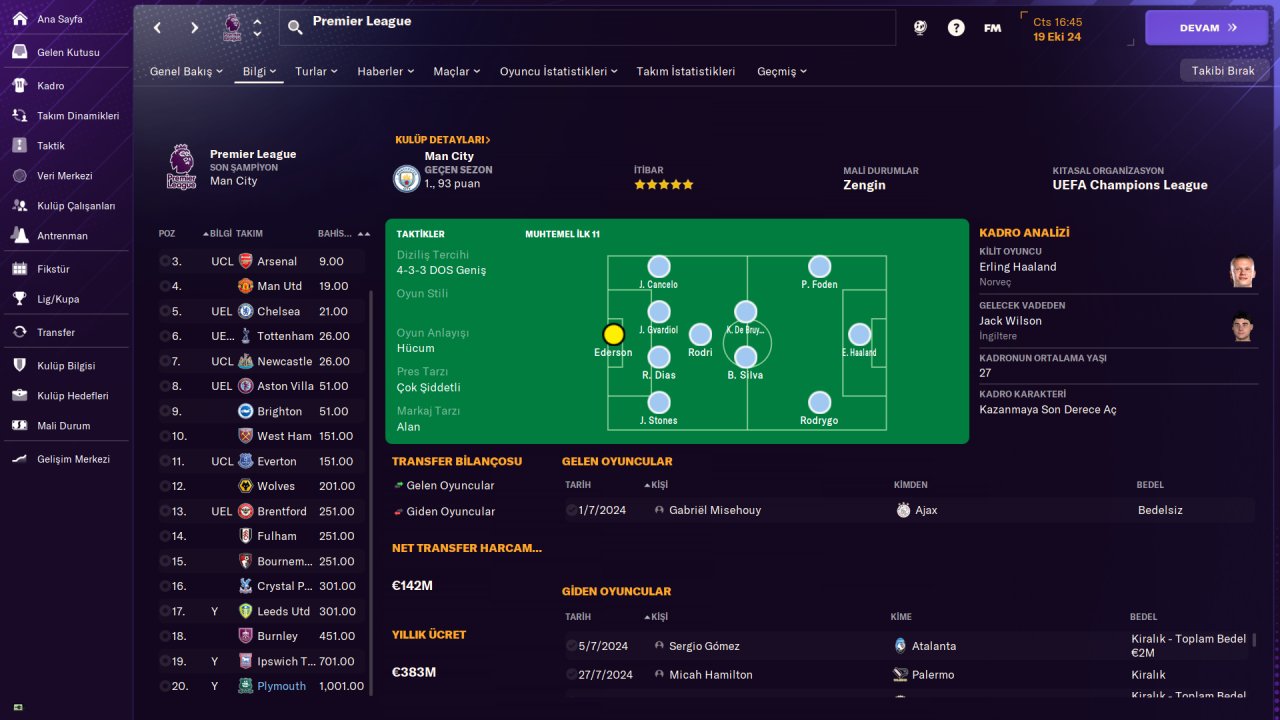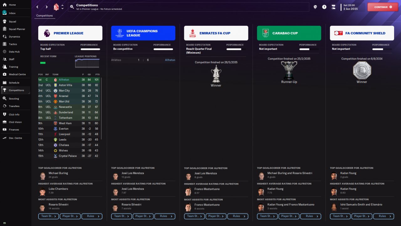 Been some time. I have slowly been slogging through seasons and have come back to showcase the power of this tactic. Predicted 10th by media in Premier league , even though I have finished 3rd 3 seasons is a row. Previous seasons won both FA and Carabaro cup and was knocked out in quarter finals of Champions League.