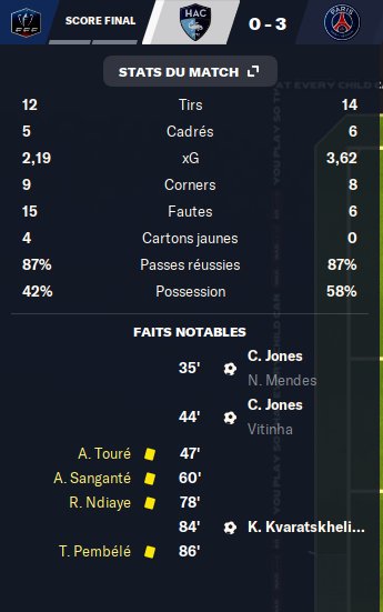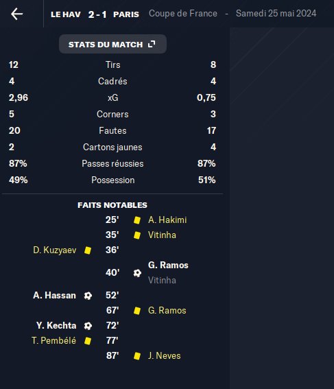 Ajax said: On the right, I played the match. On the left, I went into vacation mode (I'm Le Havre). So yes, it's PSG in front, but my question is why does the vacation mode perform better than when we play the games ourselves with this tactic? Expand