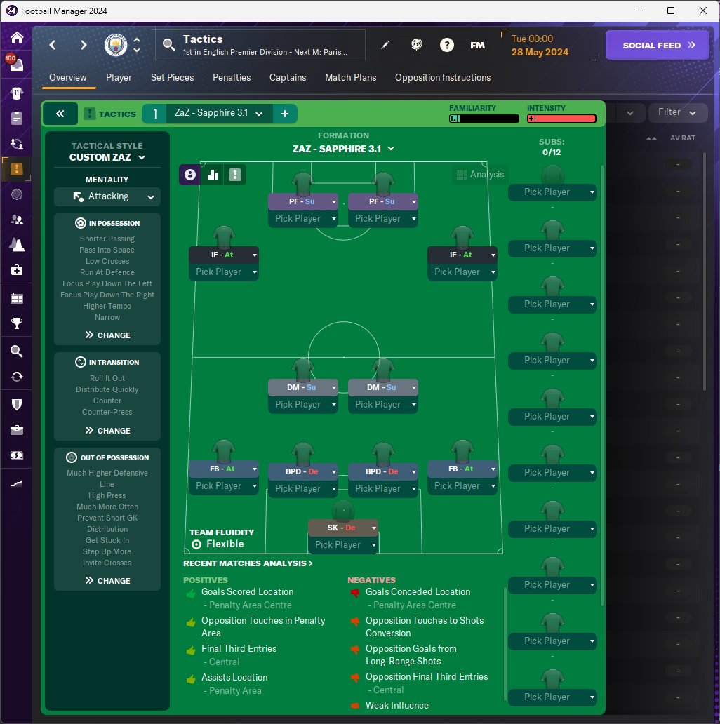 Variant of https://fm-arena.com/thread/12681-zaz-sapphire-alternative/, which is based on the top tactics from the table. DMs and FBs are set to shoot less often, since they have low shot accuracy and low xG per game. DMs are also set to take more risks, since they have good pass accuracy and have many passing options from their position.