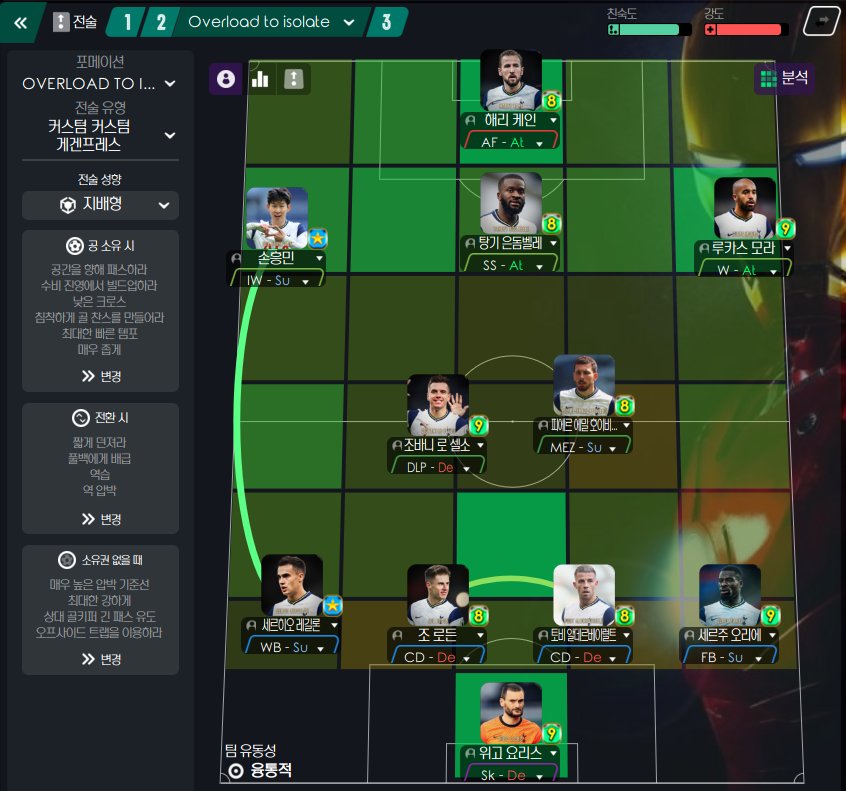 I tried to implement 'Overload to isolation', the tactical key of Modern football. The result wasn't as good as expected, but the movement in game was great.