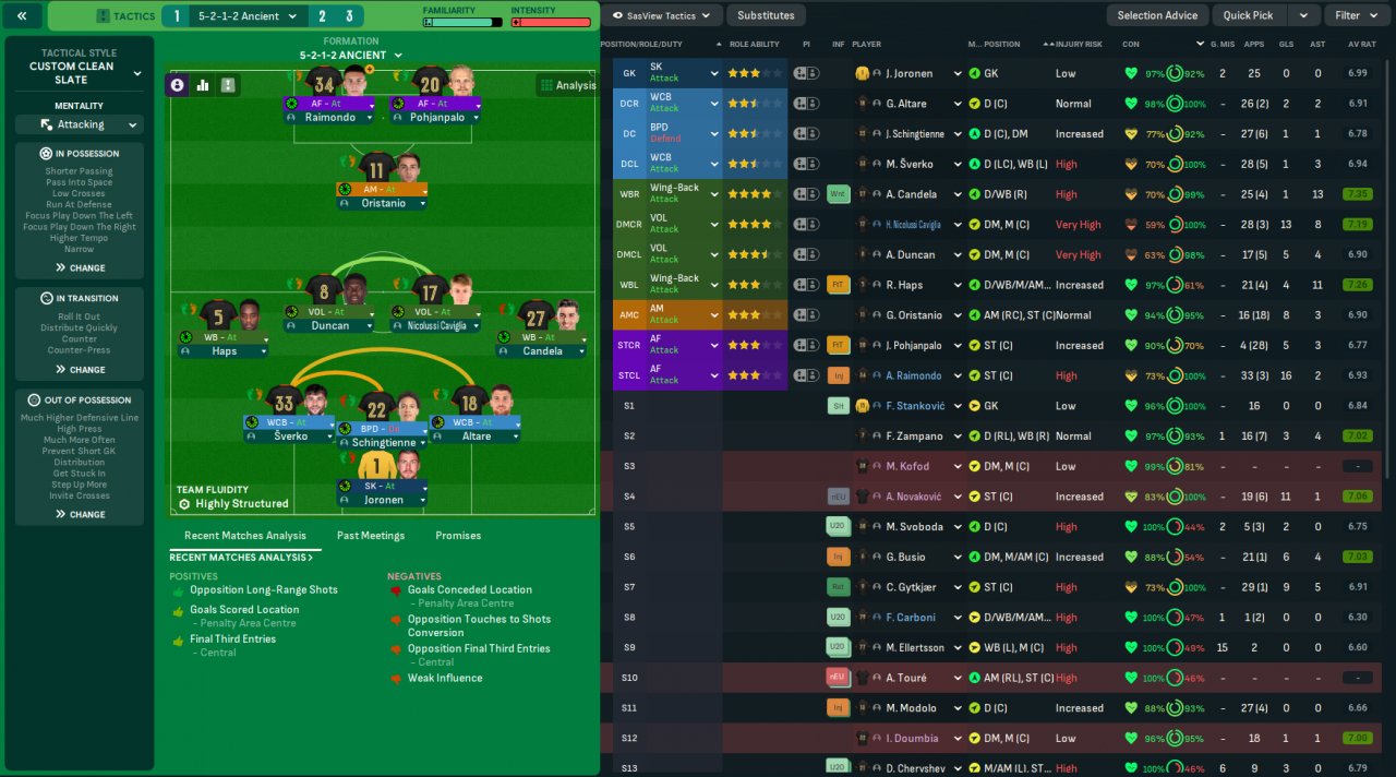 This is a 3412 or 5212 Attacking formation with many Attacking duties. For Set Pieces, I am using https://fm-arena.com/thread/9079-fm-arena-set-piece-best-hits-updated-for-1-24/