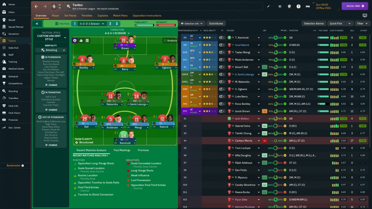4-2-3-1 formation using the same team instruction as the top tactic. All players have tackle harder and take more risks instruction.