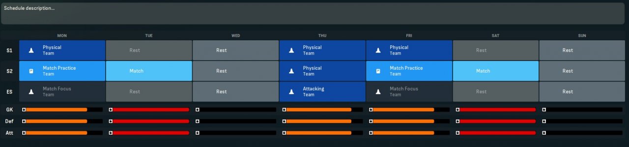 keithb said: I use a similar schedule. I don't have as many physical, which is probably a mistake and don't use match practice and physical on the same day. It's basically physical, defence and attack every day with two march practices a week and 3x rest the day after a game. It's your schedule from 22 or 23 with the rest that yourself and max came up with.