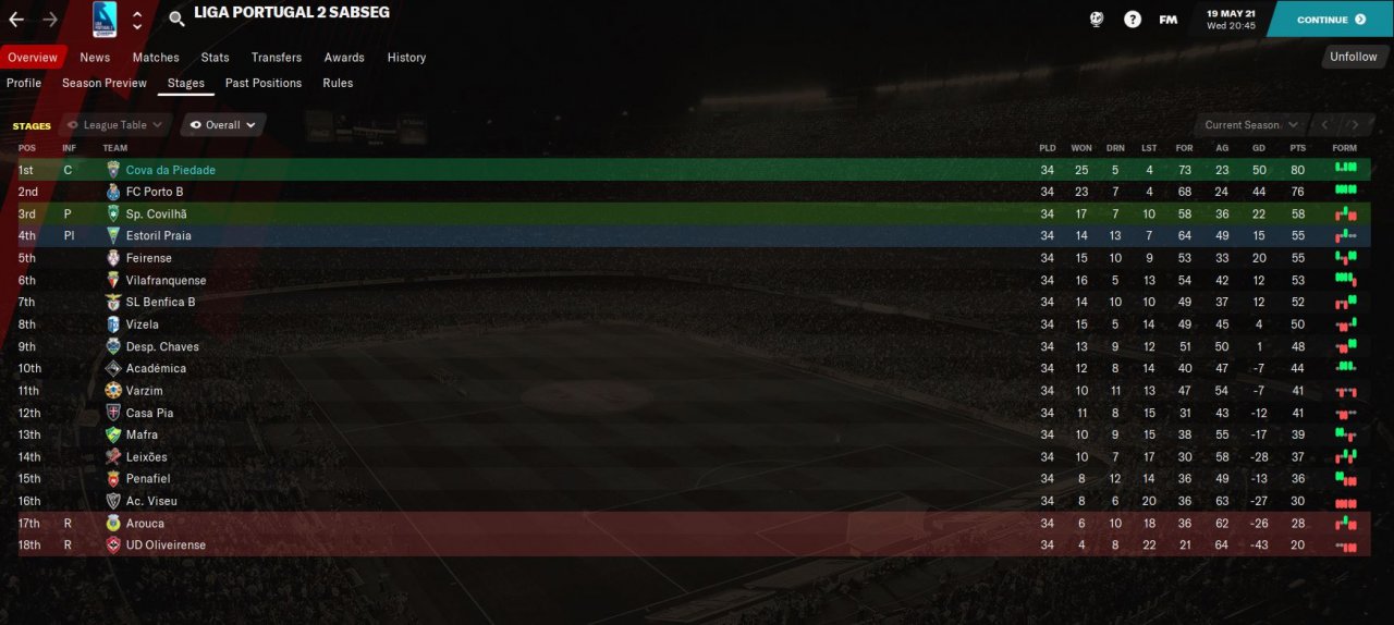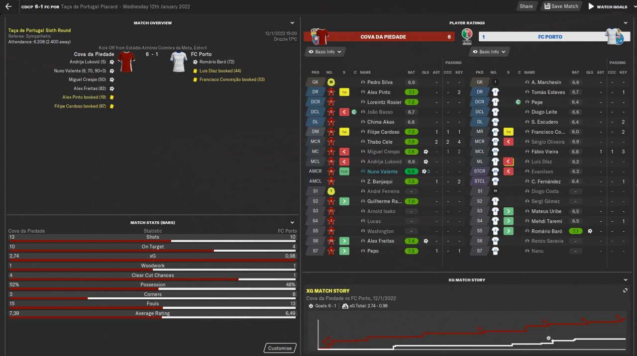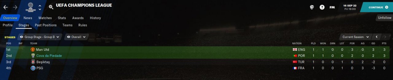 Here's a quick update. With my hometown very small club Cova da Piedade, and after winning the second division tittle in the first season, finished 2nd in the league in the second season, so direct to Champions League group stage. That's really tough in Portugal, due to the huge quality difference between the big three + Braga and the rest of the clubs. For my third season got Besiktas, Man Utd and PSG in the CL group, so maybe I can get that 3rd place for Europa League! Just beated Besiktas 2-0 at home, so it started well! It's funny I don't even have a proper stadium for the league, so I play on another stadium, but that stadium is not enough for CL, so i CL I play in yet another stadium!!! They plan to build a new one, but it will take alot of time...