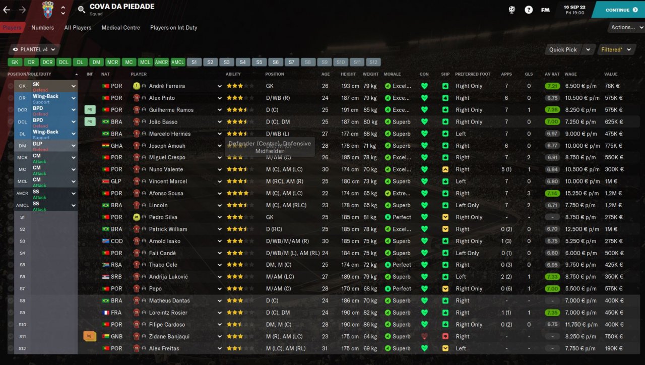 And the team, a simple and normal bunch of very average players, no super regens or stars. Actually for the first time in alot of years I'm not using genie scout, and just using the ingame scouts recomendations, and they work just fine.