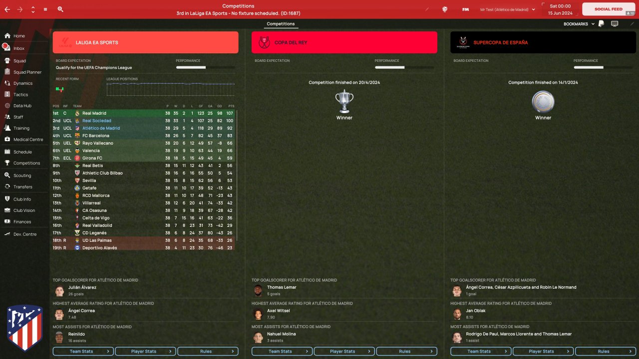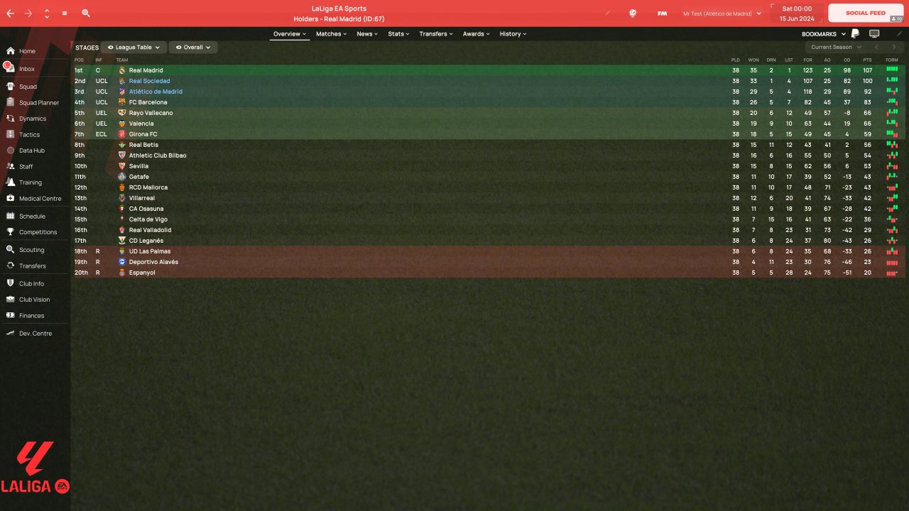 As you can see a very positive test, if it wasn't for Real Madrid having an unbelievable season it would have been a clean sweep haha,