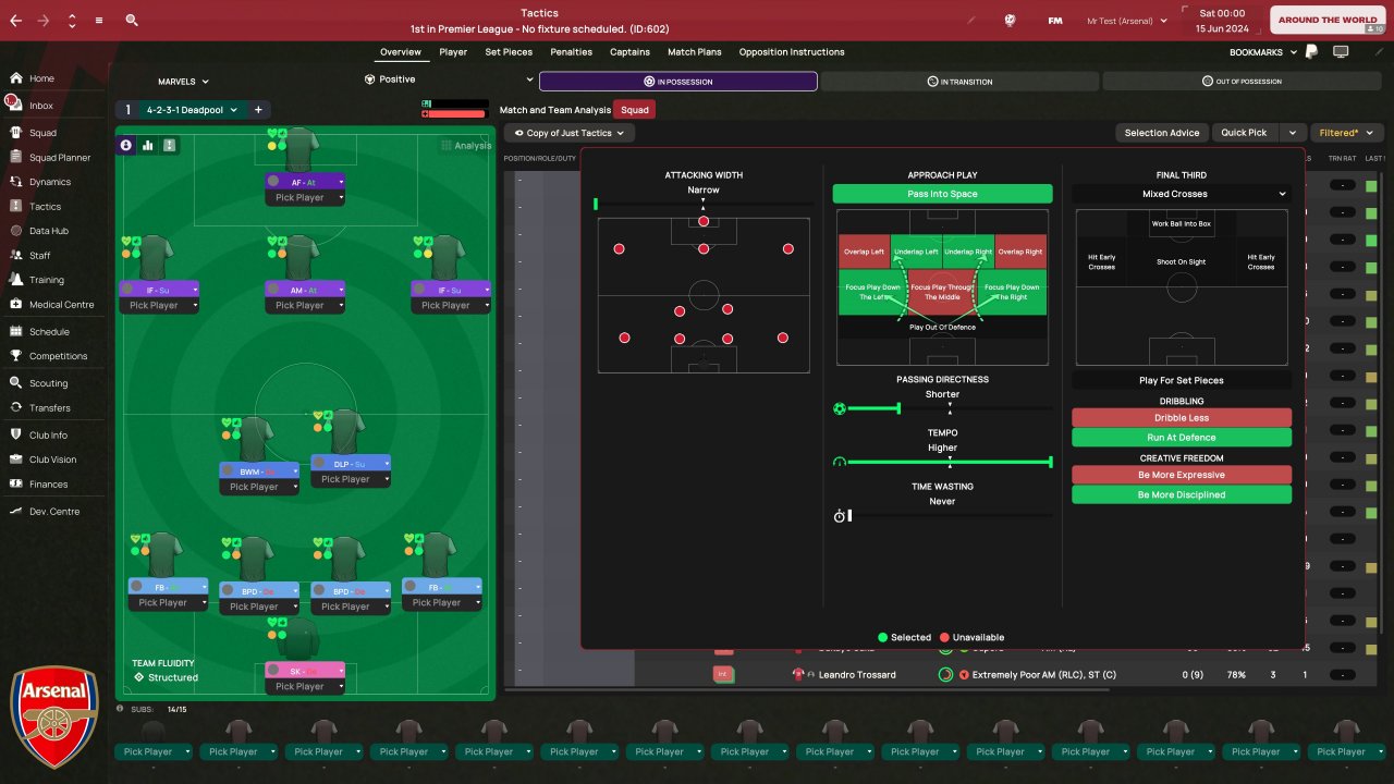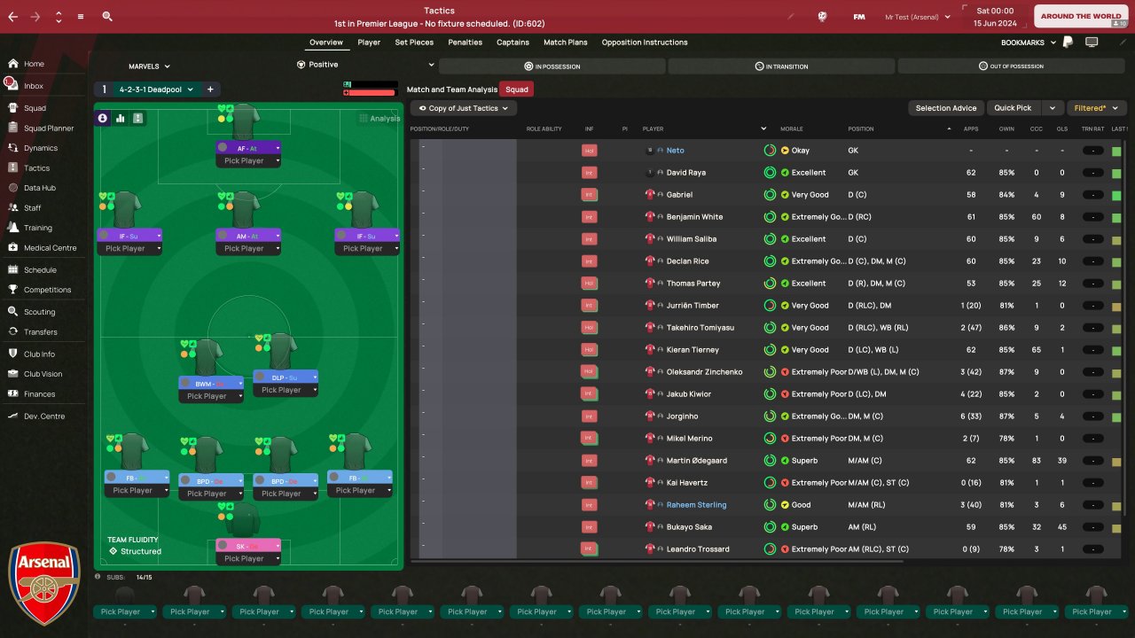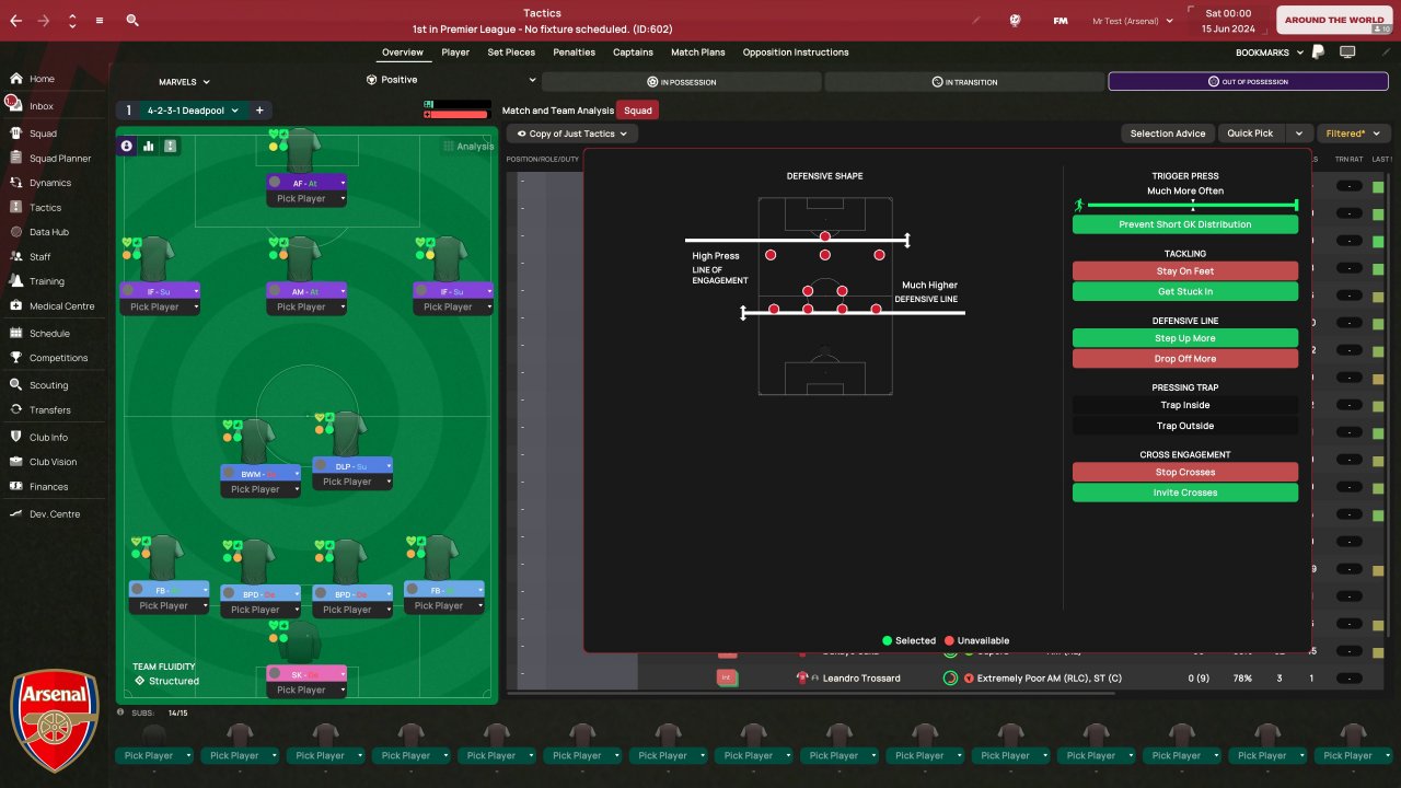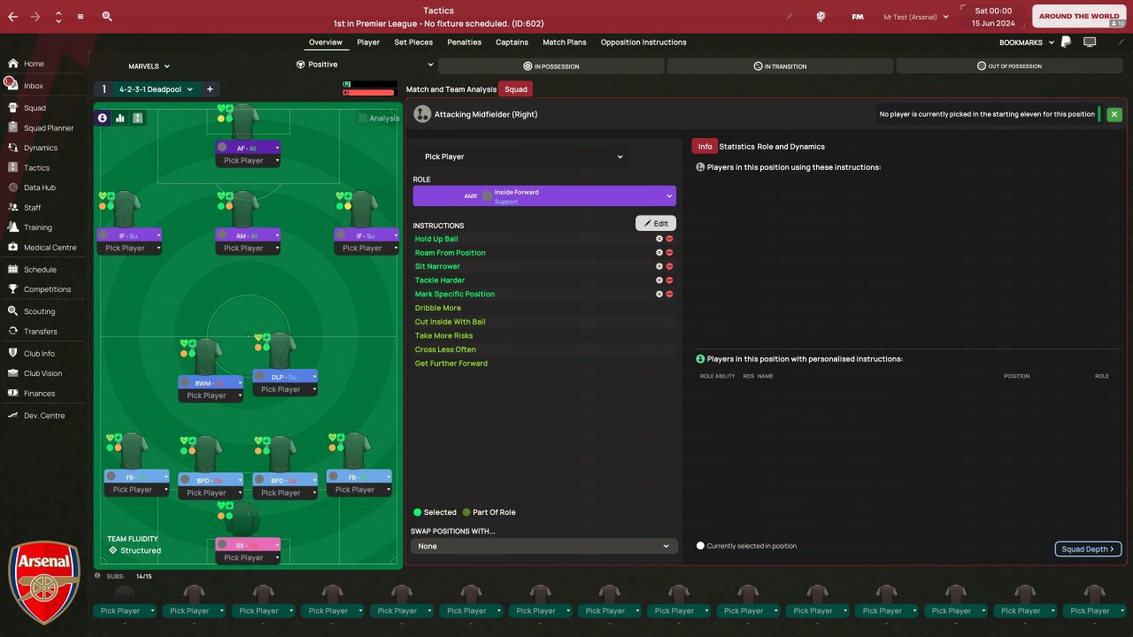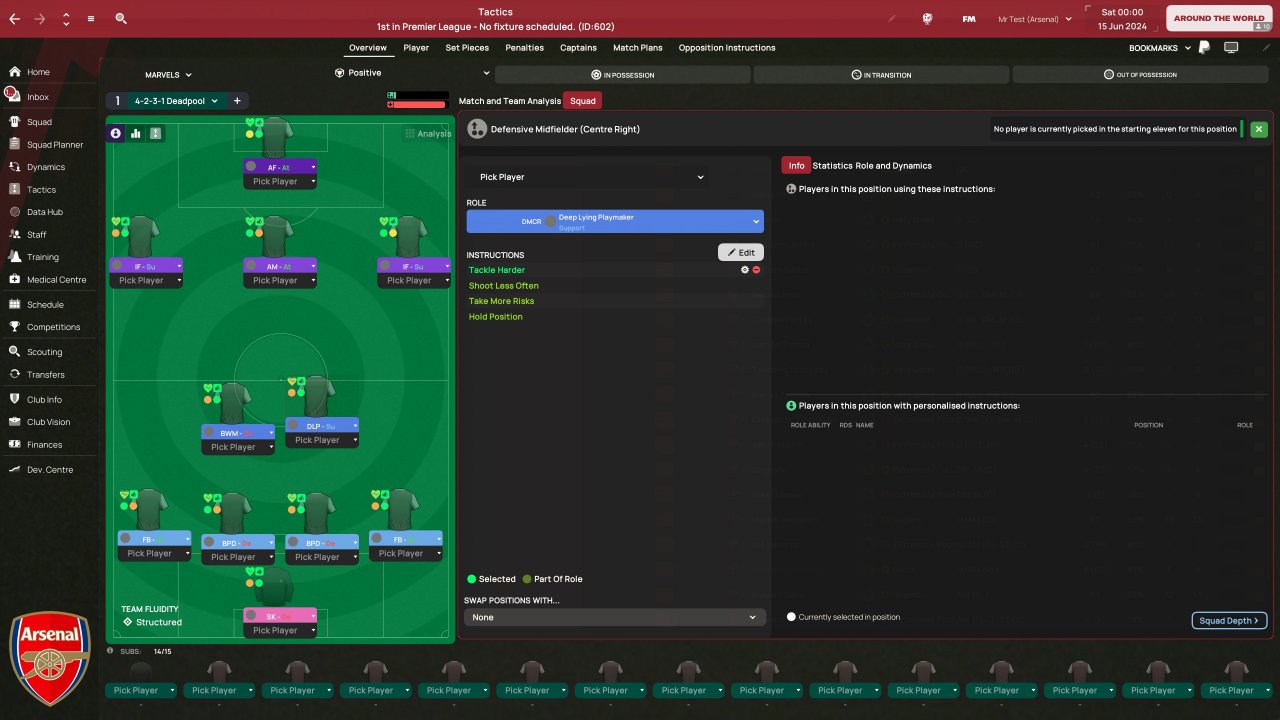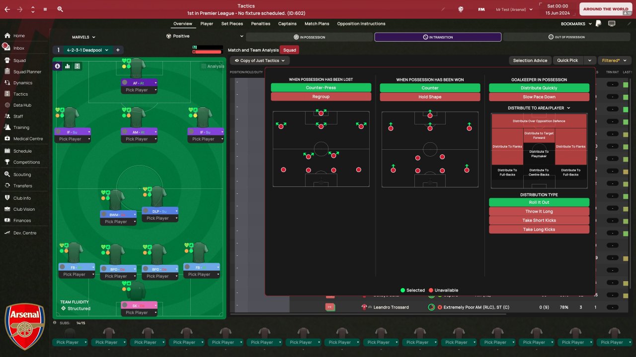 - Toyed with adding Distribute to fullbacks/Centrebacks but it was a bit hit and miss so left of the