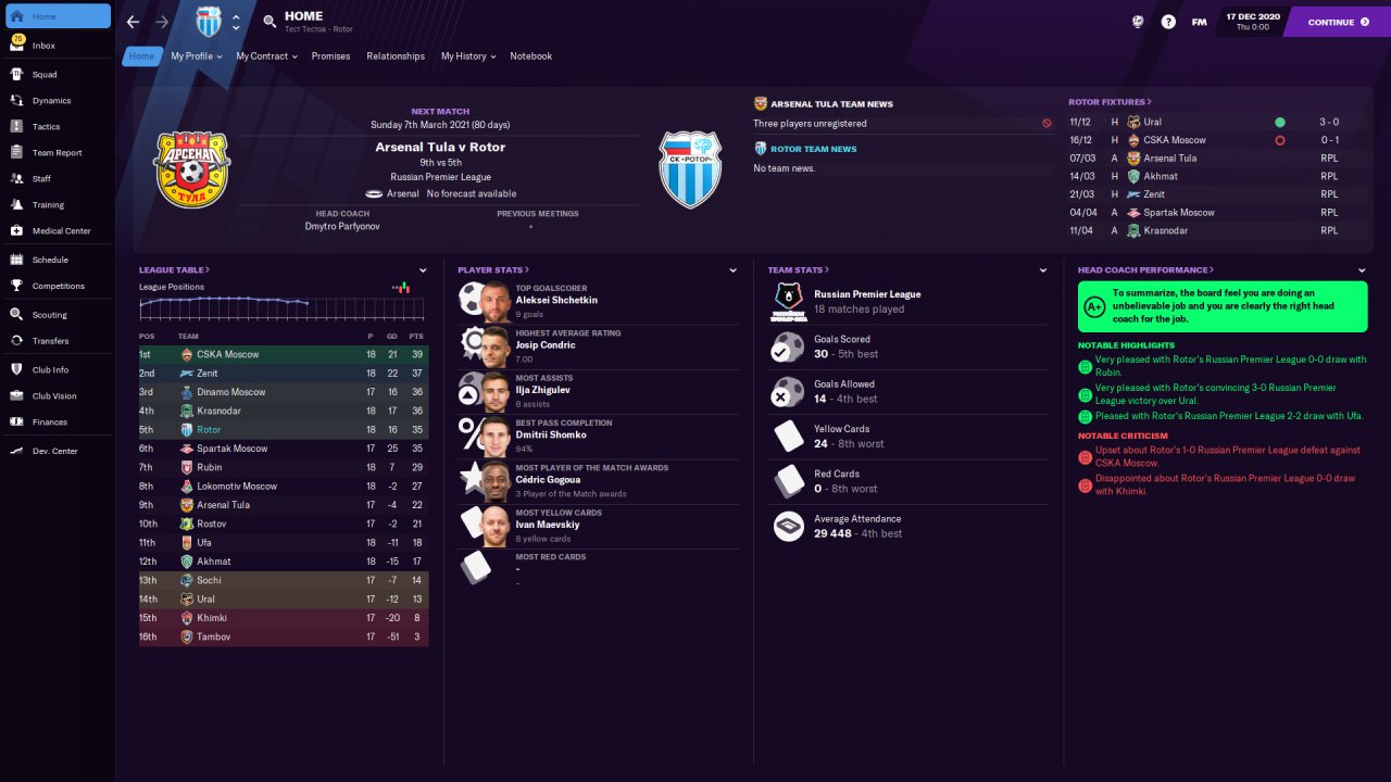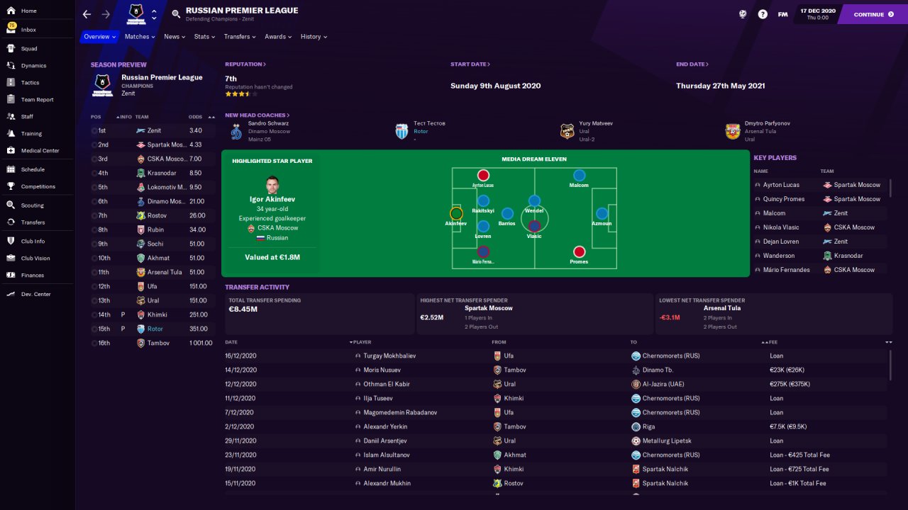 Season was started in 15th RPL team. After awesome performance in several matches Rotor was at the first place. But then droped down at the 5th. However, it's a great result befoe second season half start.