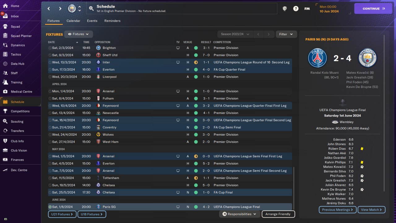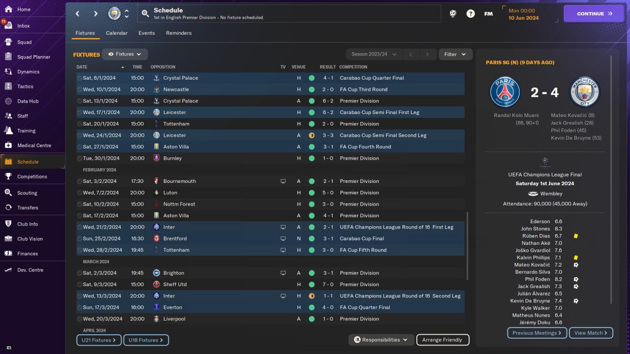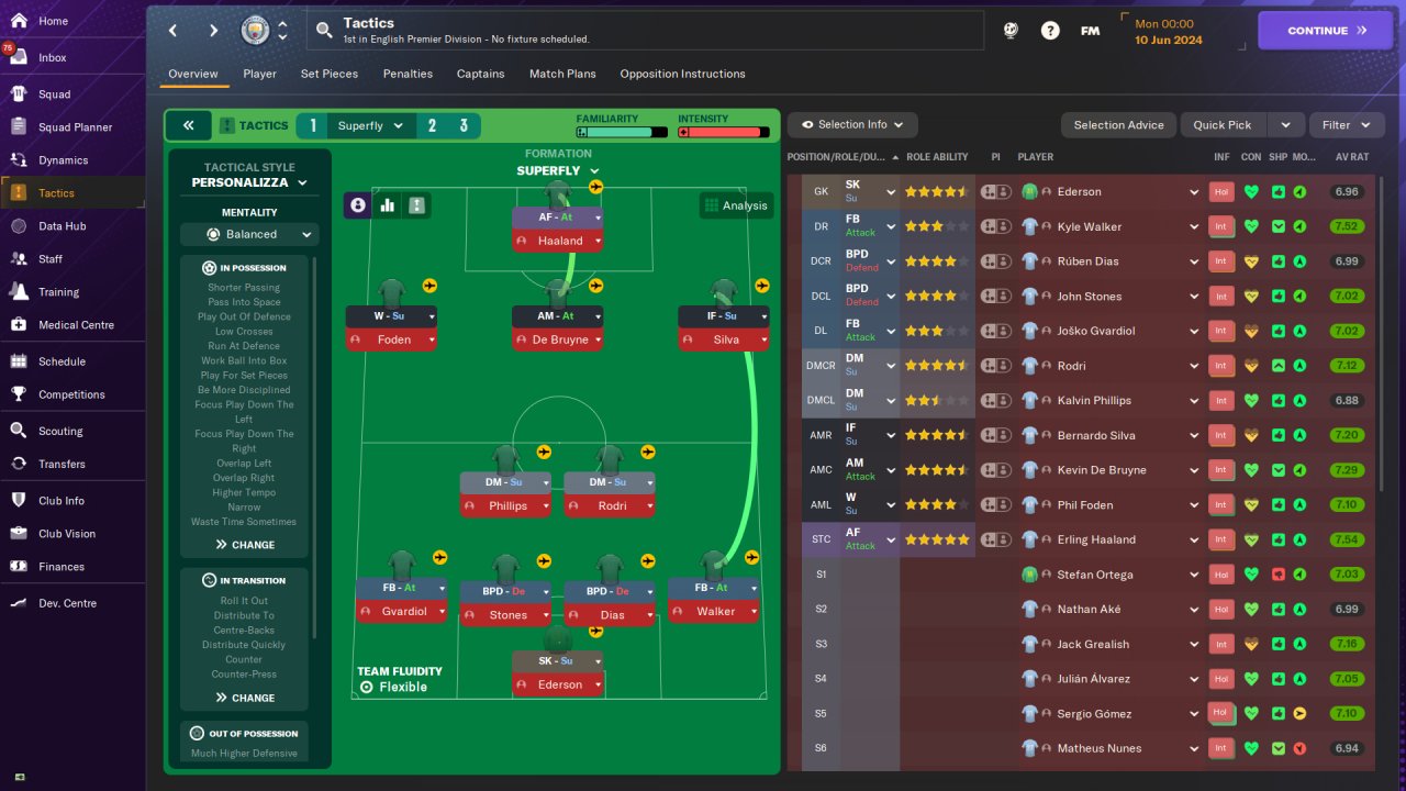 Hi everyone, I want to share with you the tactic that won me everything (Six trophies: Premier League, Champions League, Uefa Super Cup, FA Cup and Carabao Cup) with Manchester City in the first season, playing on holiday mode. No players bought during the season. I hope you enjoy it.