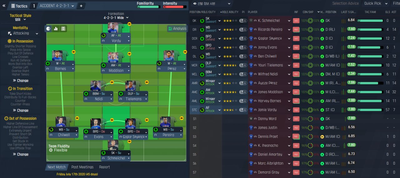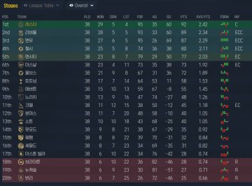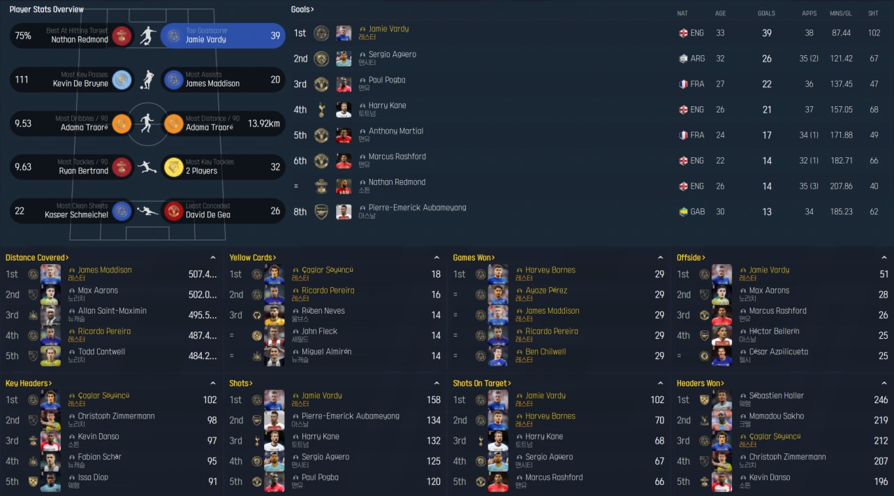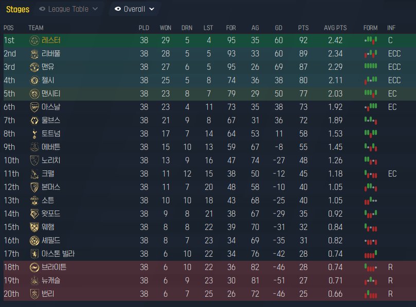 Because of the patch, the team name comes out in Korean. A team is Leicester City. All game is vacation. A league win and EFL Cup win. It achieved the highest goals and the lowest goals against.