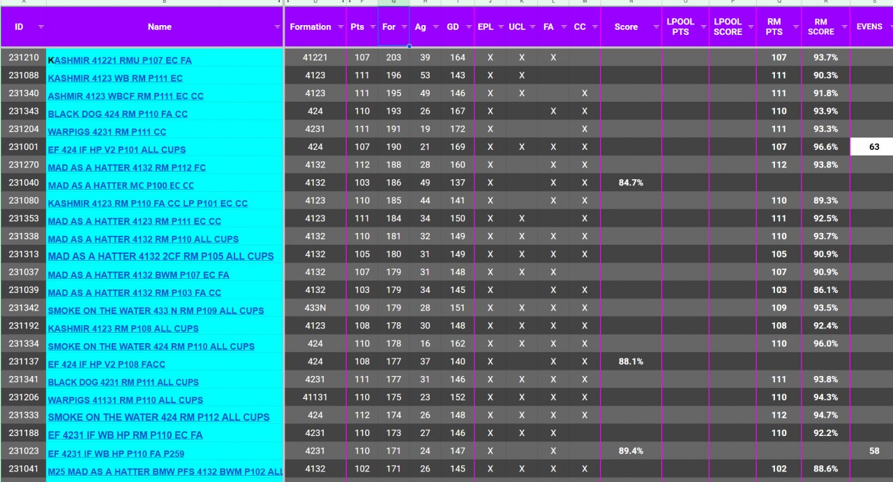 Thank you. I kind of figured it might be Elite from who you tested it with. I didn't know if the Mad 25 stood for anything? (I guessed the 111 was points). I think this is 100% super workable though as it's like the hybrid between a 424 and 4213. I can see how it works best witb elite teams though due to being a bit more exposed at the back.
