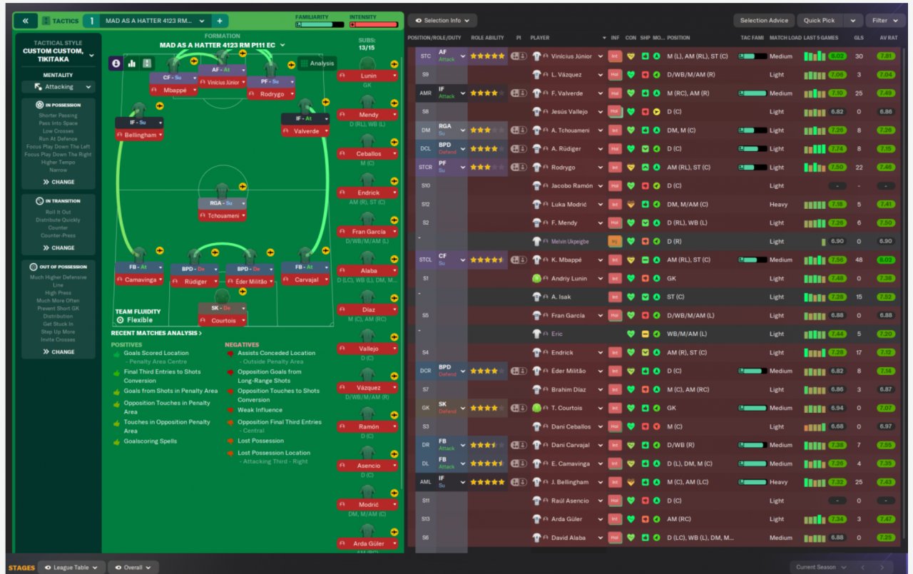 Thank you. Super interesting. Would have thought it would have resulted in more goals which it did but oddly I'd have thought they would have come from Bellingham but he had notably less. Will definitely have a look at this. Not sure I have the players to run it at the minute (this one with the AM and DM I do and it works nicely when I've used it) but this looks a touch more aggressive.