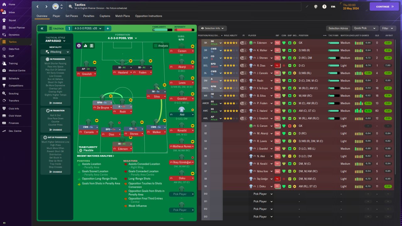 Stats-wise i average around 62-65% in possession, Score about 100-130 goals and concede 20-35.