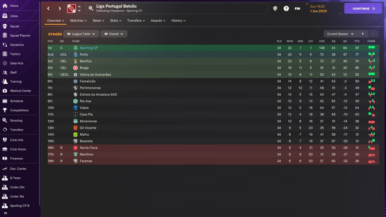 The attached formation gave me great success with Sporting CP in the second season. Completely dominated the Portuguese league (just one draw and one loss) and made it to the semifinals of the Champions League, losing only to Bayern on extra time, after winning the Champions League group stage. My team is perhaps a bit improved relatively to the initial Sporting squad, but not substantially so, as some of the new players come at the expense of having had to sell several good players (e.g., Inacio, Morita, Edwards). I do think that my tactic plays a massive role in the success of my team.