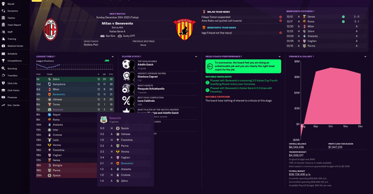 I tested it in Iceland - I have no screen shots but I was undefeated with the team Start. I test it in Serie A with Benevento, no transfers and so far its amazing