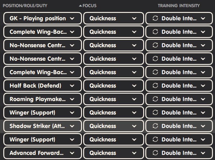 3. "All rest train"= maximize Pace + Acceleration option, The cost is that it will continue to degrade both technical and mental class attributes This would be a relatively extreme option, and you could decide whether to use it or not depending on the actual situation, Or anything else on the table , or use combinatorial /interleaved