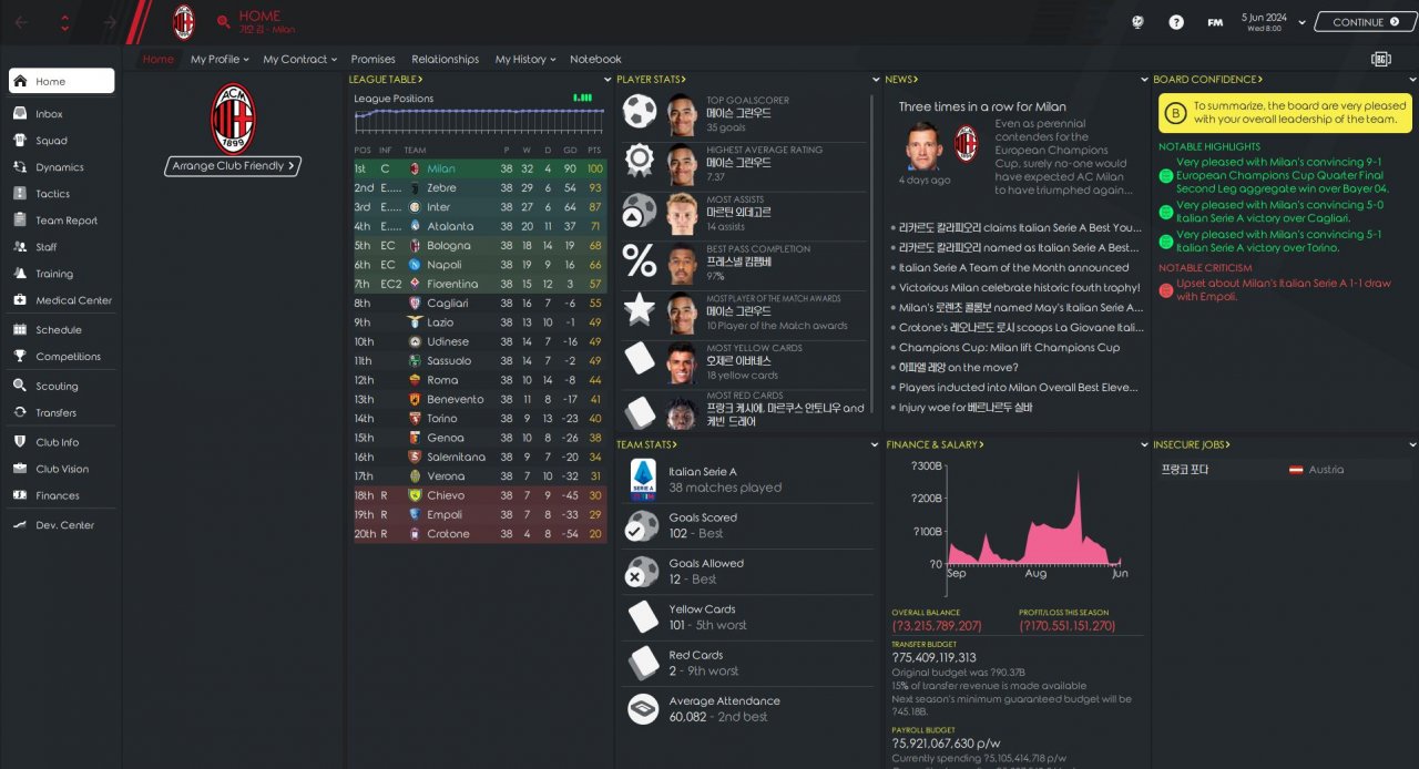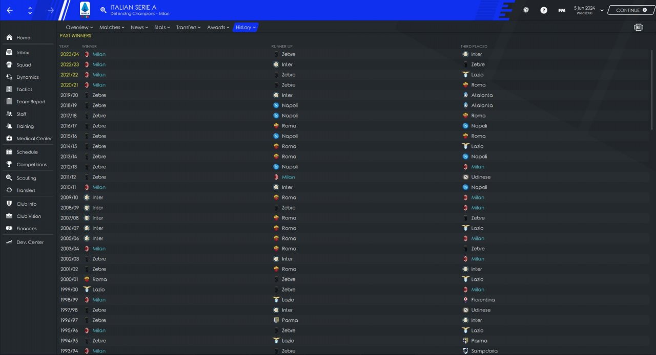 it's four-season in the serie A.