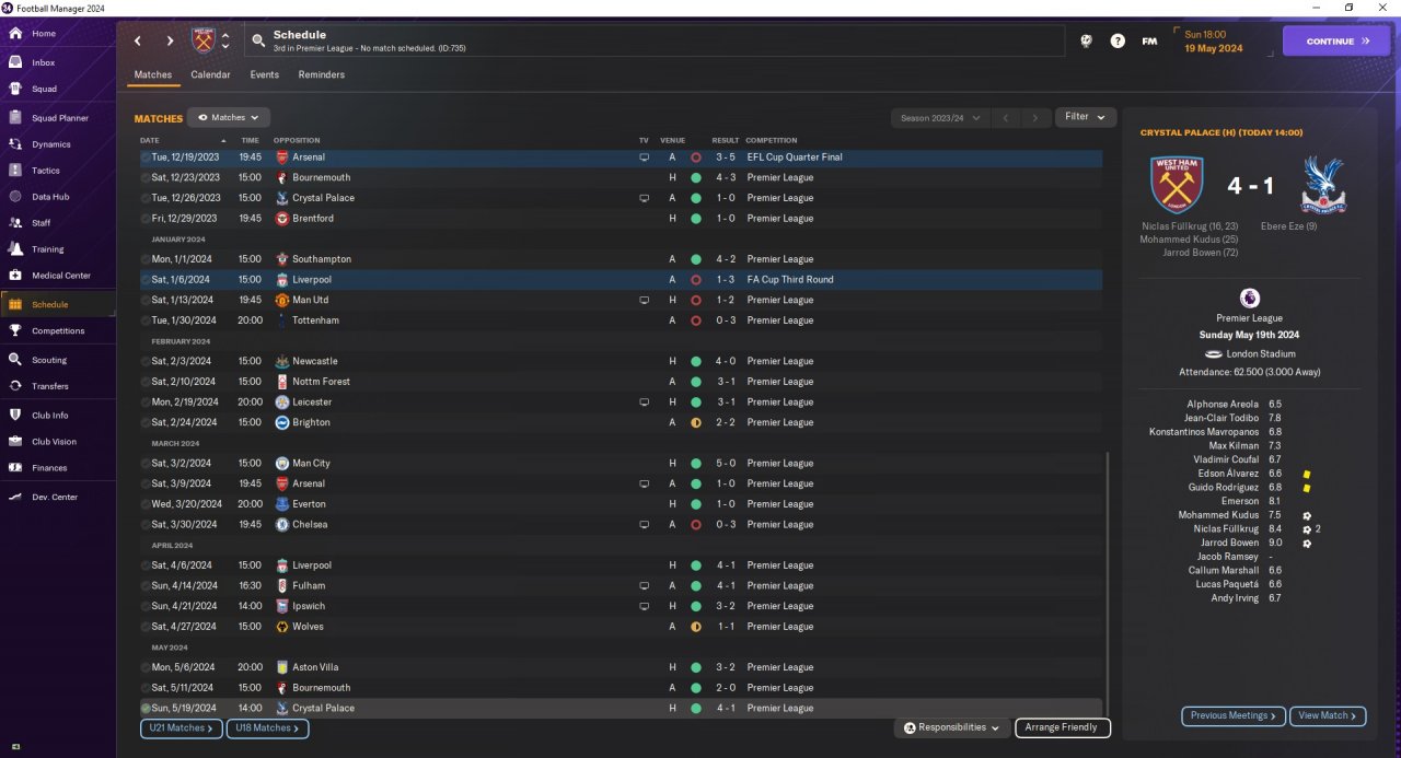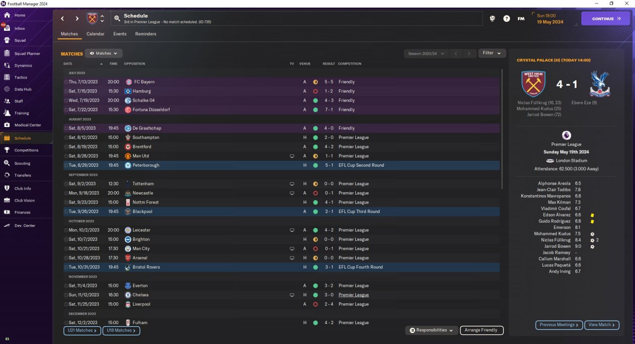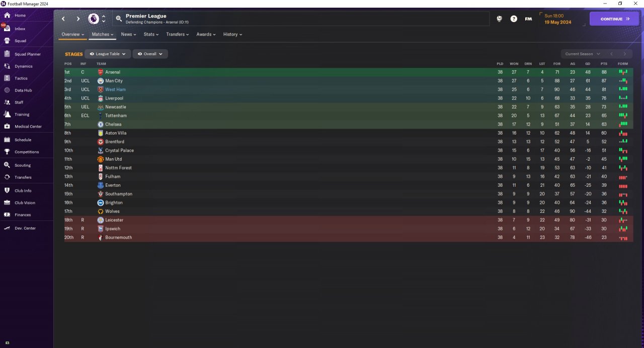 Finish 3rd in 1st season with West Ham