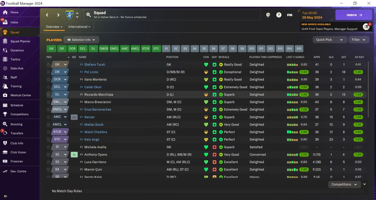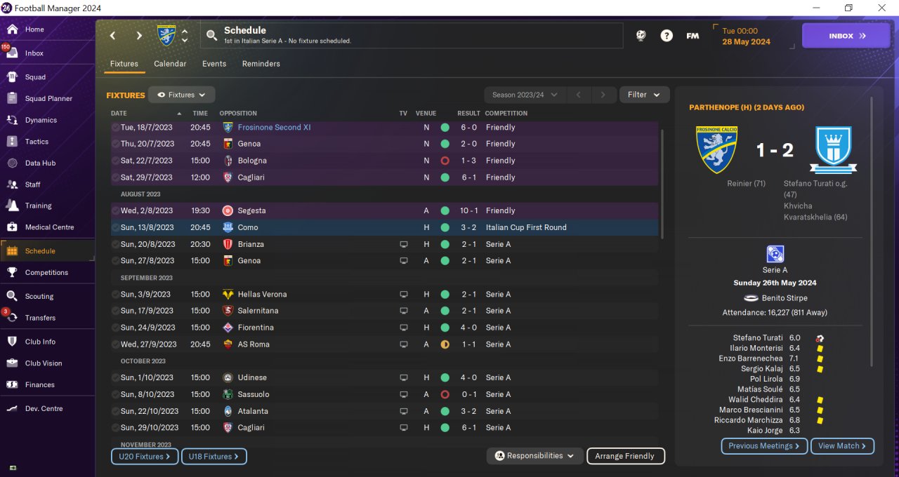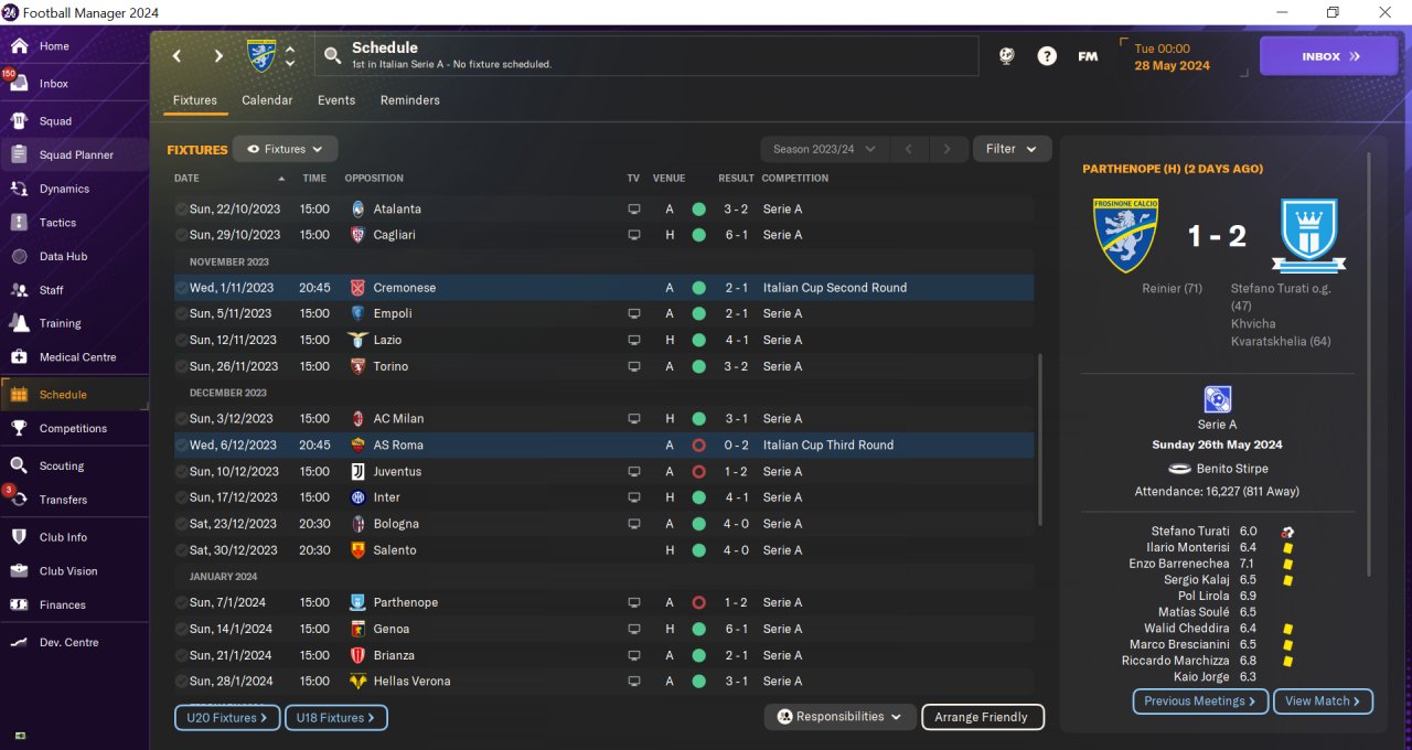 (Impressive results with Frosinone, predicted to be 20th in Serie A)