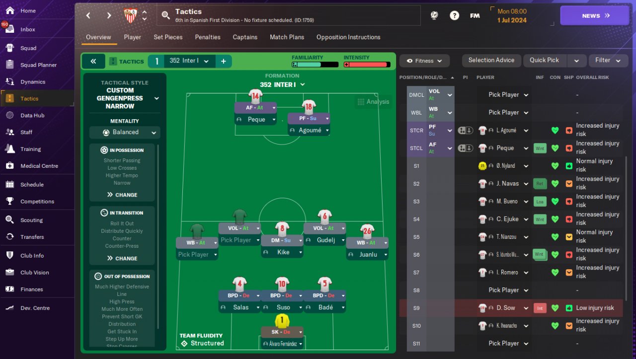 Trying again my favorite IRL shape i love SV more than CM in attack but in FM they are both similar in performance, trying to keep it simple with TI and using stop crosses TI mostly because we play very narrow without much width in defence maybe it helps