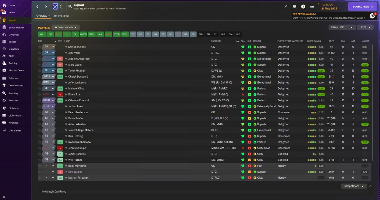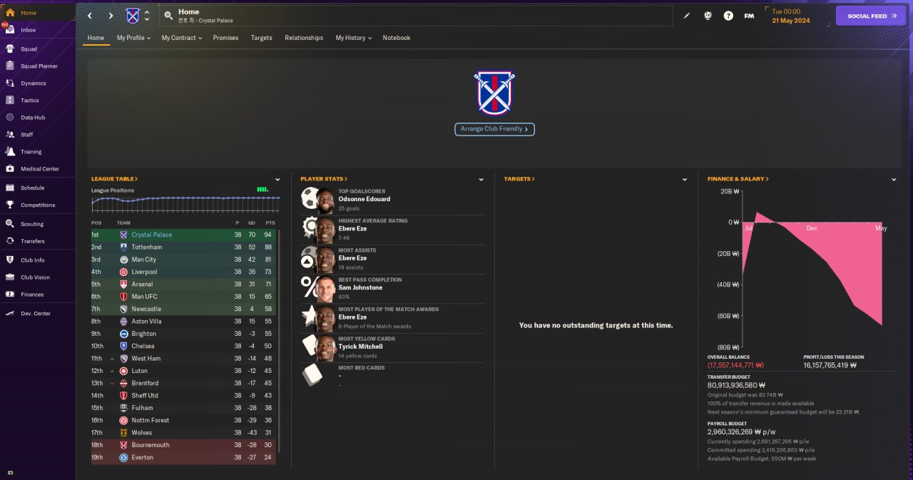 Knocked out in CL QF. I'm impressed you managed to win Prem with Palace!