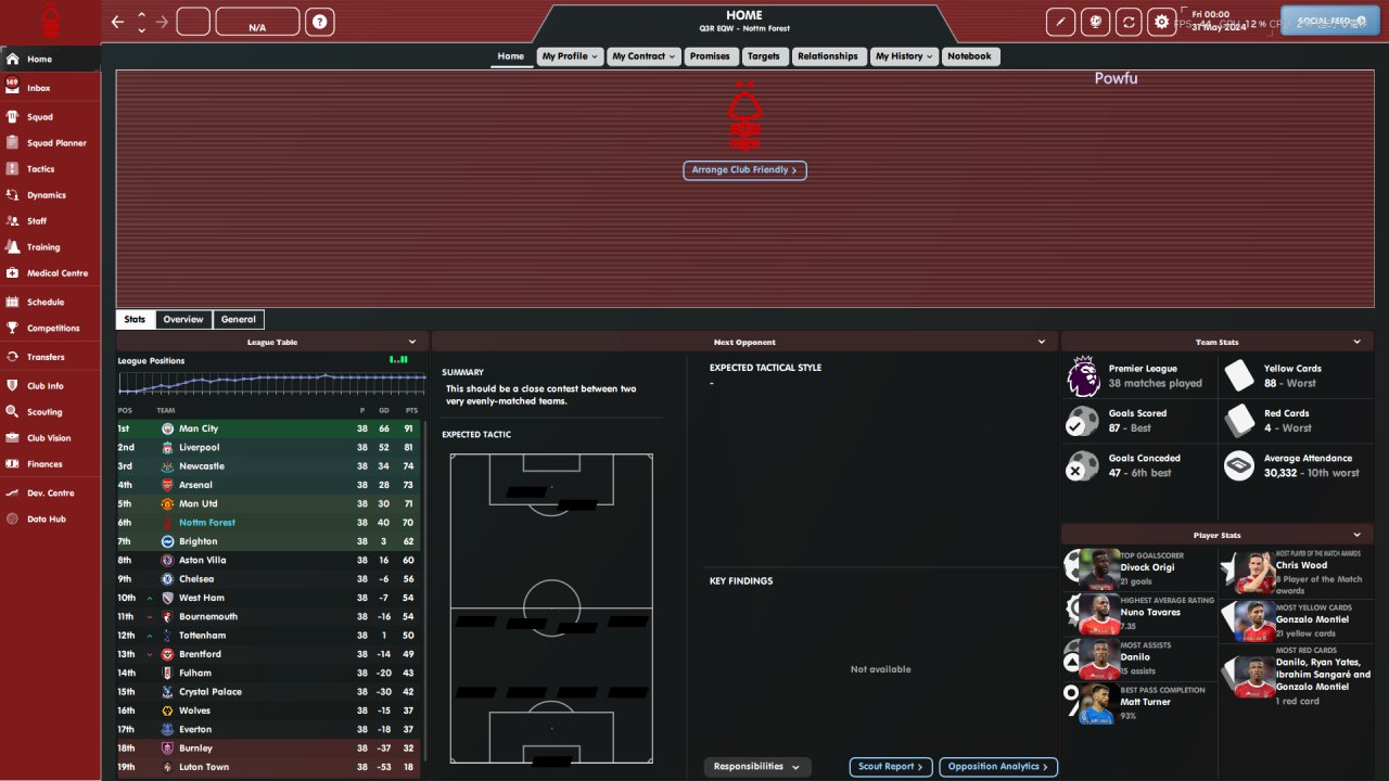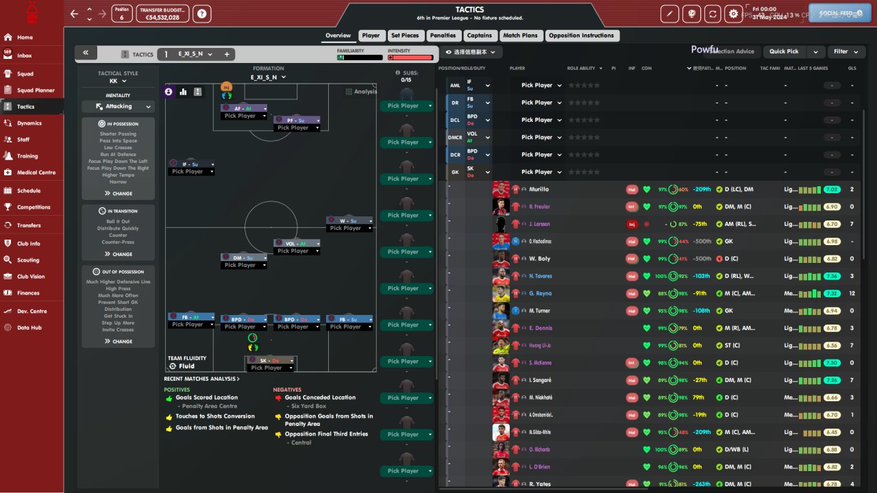 Asymmetric tactics, with the highest number of goals scored, ranking third in the Premier League and sixth in the lowest. Tested for 4 seasons, skipped all competition