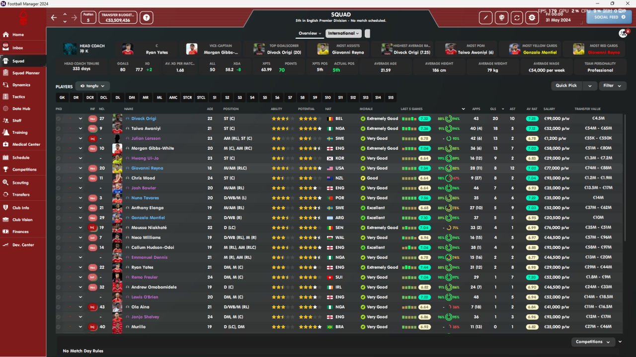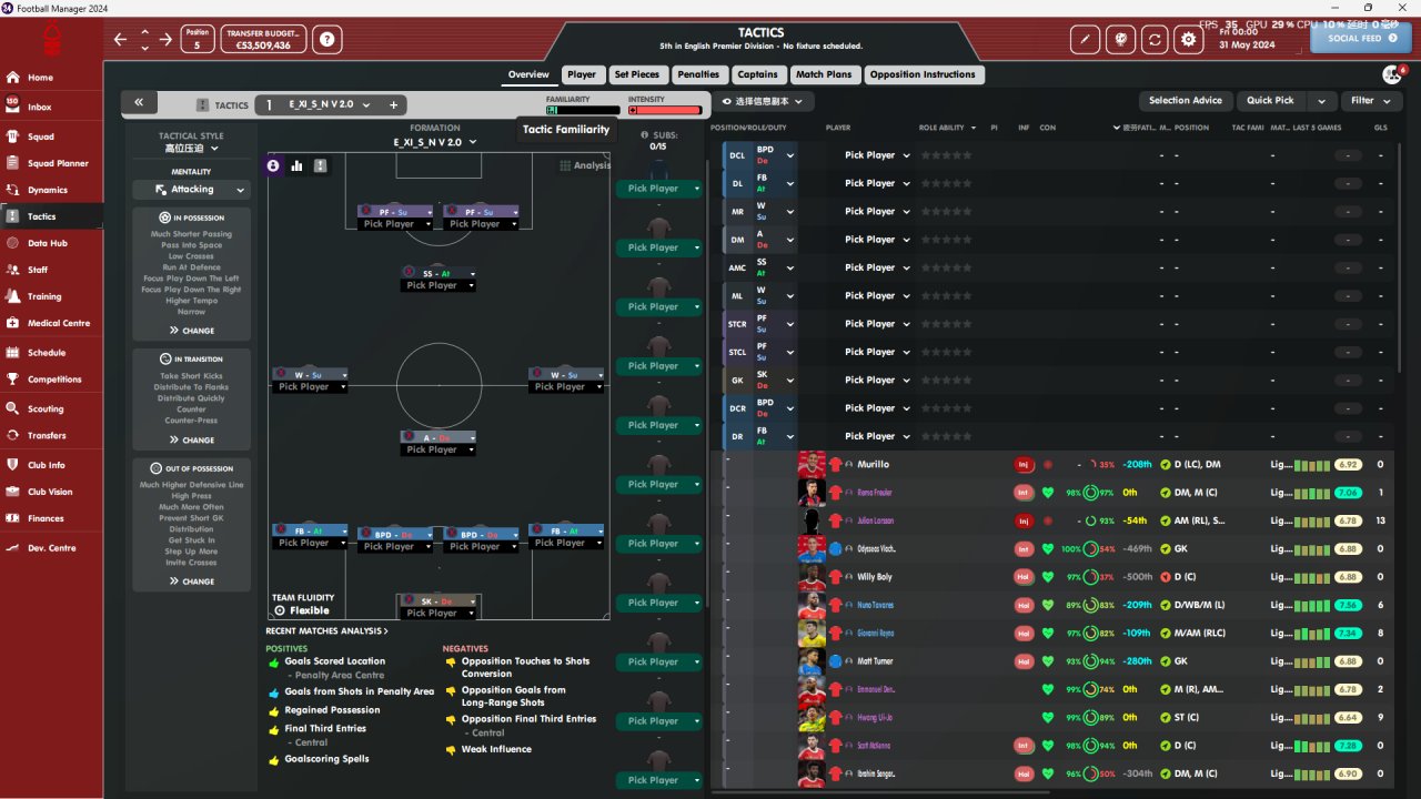Single defensive midfielder, 442 diamond shaped, tested for two seasons, highest fifth, lowest sixth, lowest coach attribute, always on vacation