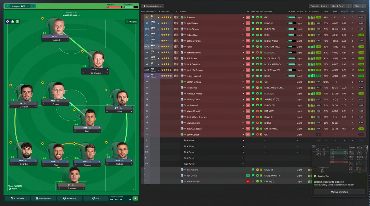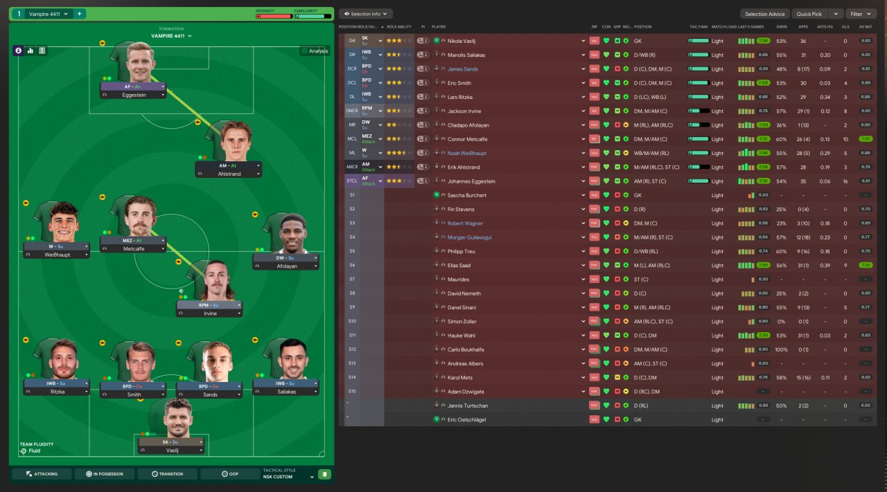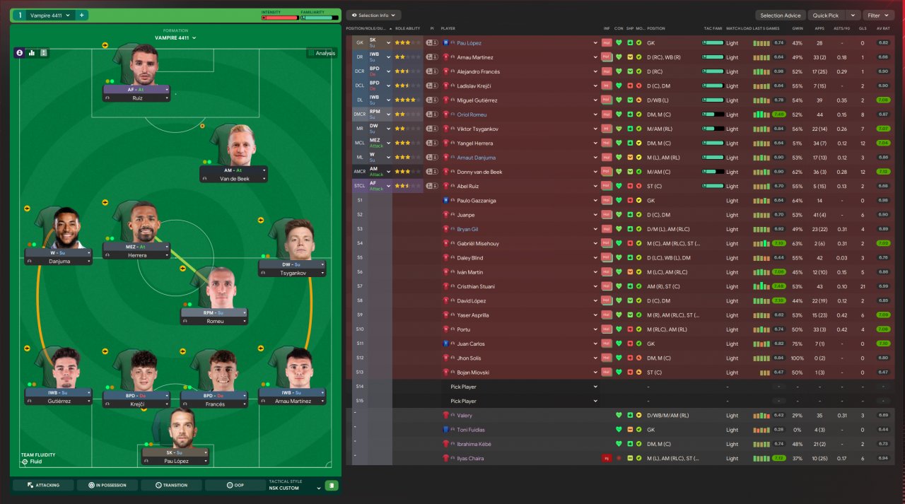 Sink your teeth into the game with the 4411 Vampire! This tactic thrives in the shadows, waiting to strike with precision and ruthlessness. Tested over a full season with St. Pauli (underdog), Girona (underdog/sub-top), and Manchester City (elite), no transfers were made, so success depends on managing injuries, form, and a bit of luck.