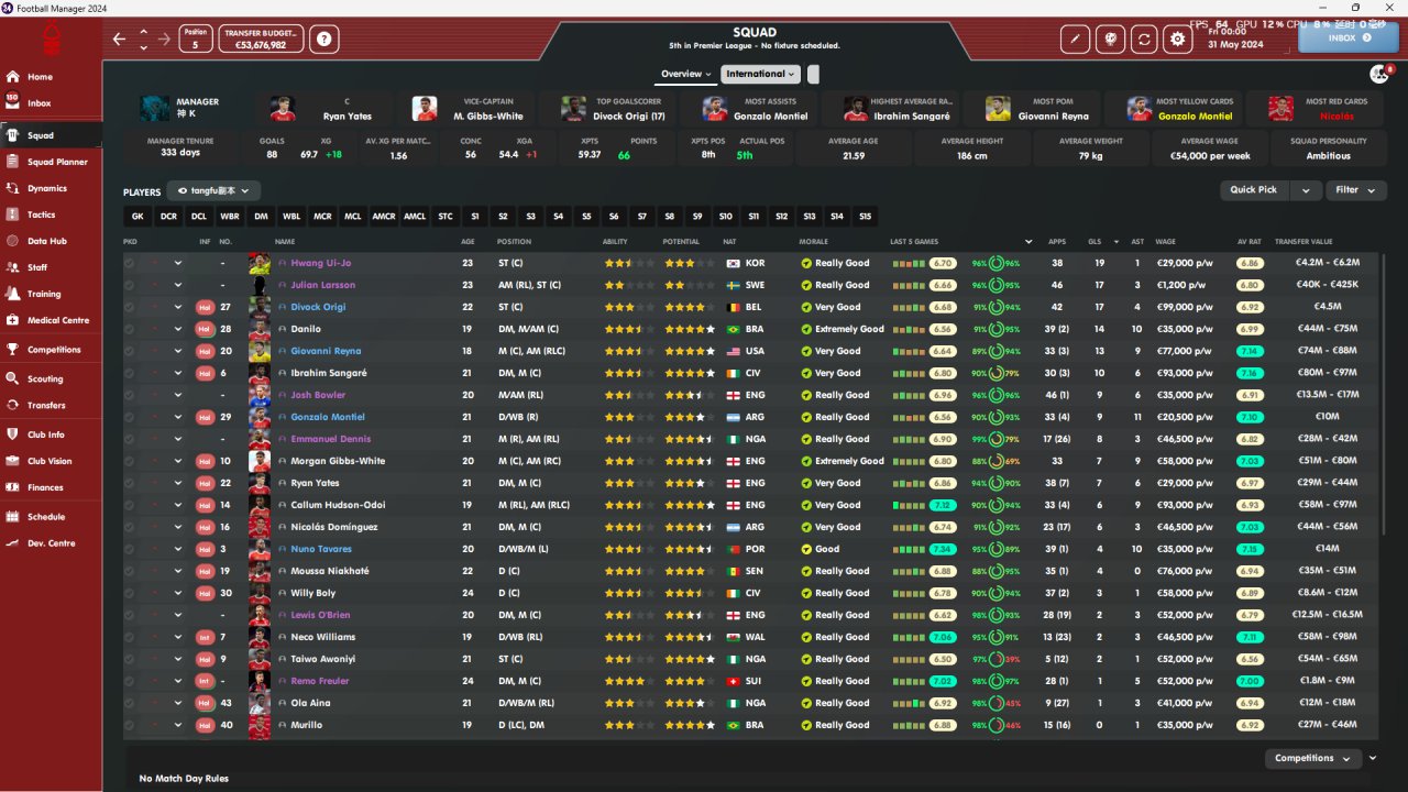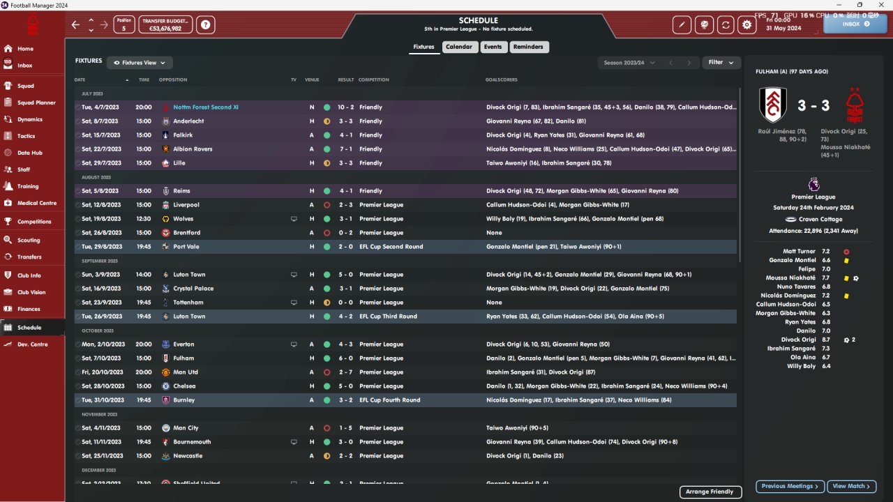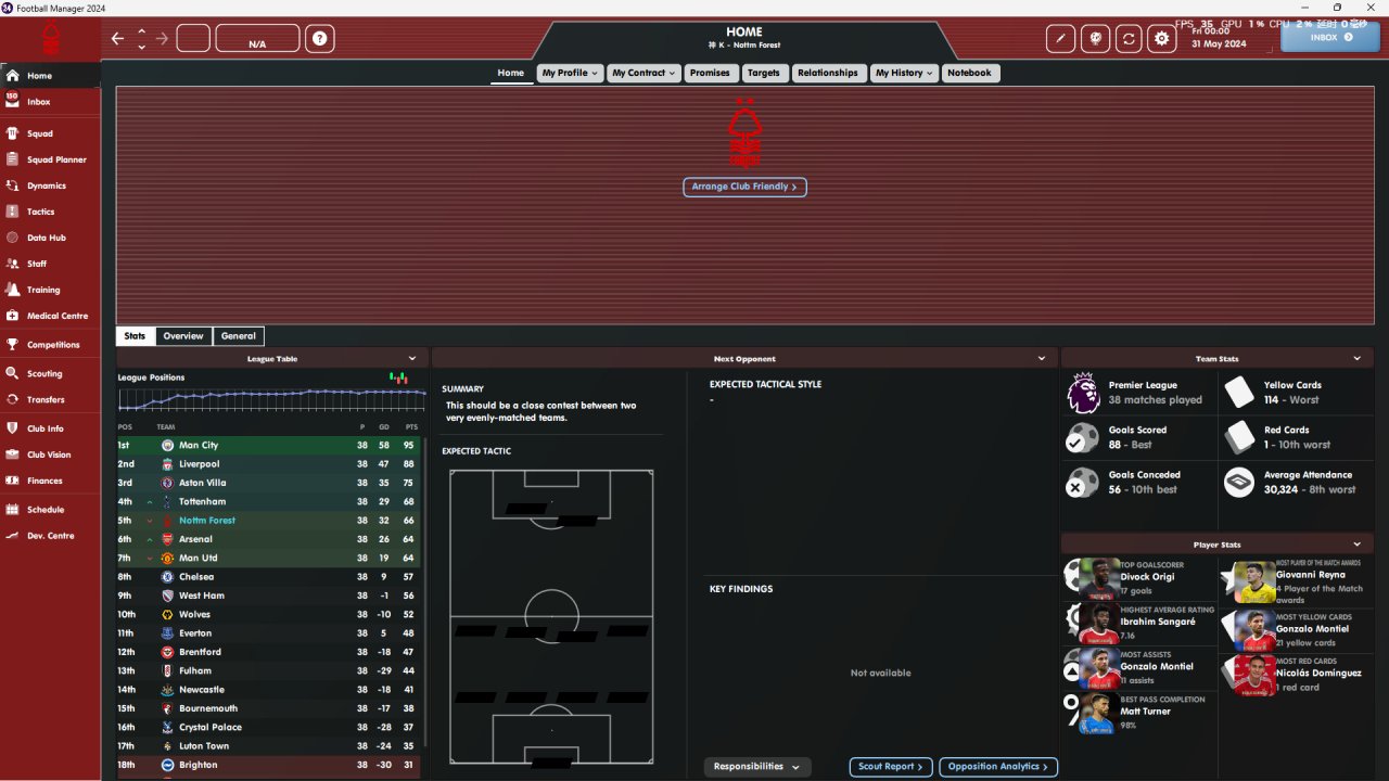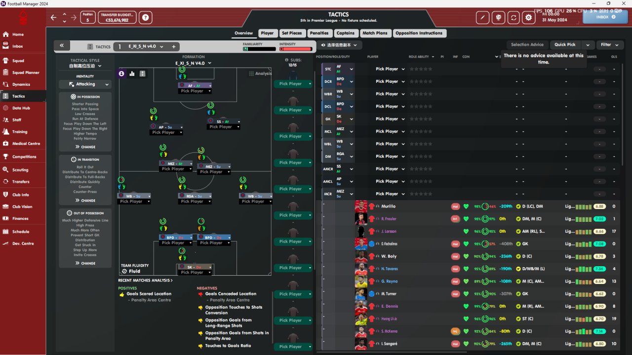 Double defender formation, Nottingham Forest, highest fifth in the Premier League, lowest ninth, with the lowest coaching attributes。