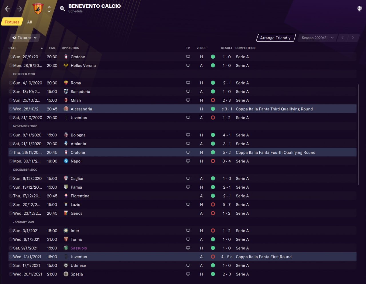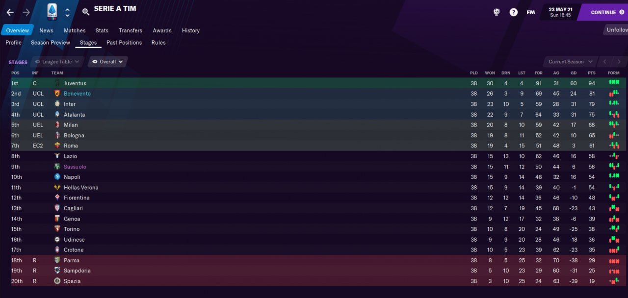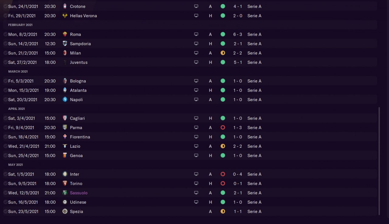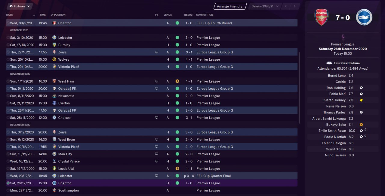 I've had amazing results with numerous of teams, but lost all my documents.. Made a new save this week to have something to show. Benevento in Seria A, predicted 18th and finished 2nd first season. No signings made. Also showing a screenshot of my striker's stats, he did very well. I've had Haaland on other saves scoring crazy amount of goals, recommended. Also having a screenshots of a testing save with Arsenal playing mostly youths, and smashing teams.