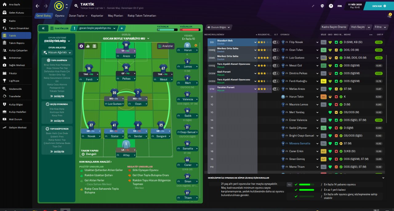 I had a tremendous success with fenerbahce using this tac. Please test it i think it will be very successfull.
