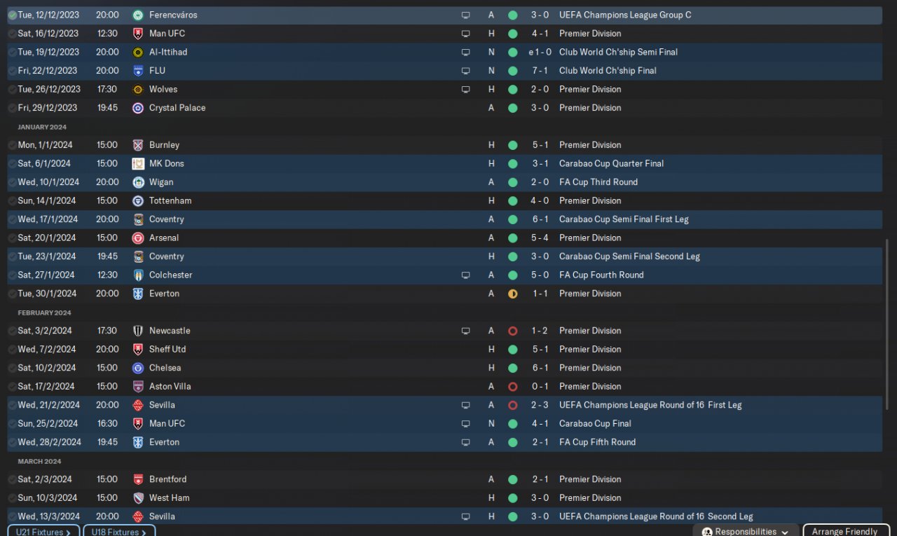 A Smile said: I’ve recently found that this formation works better in PVP matches, likely due to better space utilization and localized numerical advantages. After all, positioning and spacing are crucial in FM24’s tactical system. I initially believed the three-striker formation had immense potential—its attacking output is the most explosive—but I later realized an unsolvable issue: FM24’s defense relies heavily on two key aspects. First, a double defensive midfield setup to protect the half-spaces, and second, proper positioning of wingers and full-backs to cover the flanks. The three-striker formation can’t balance both—you either sacrifice one defensive midfielder or leave a flank exposed. Nowadays, every new Hall of Fame tactic I encounter feels like a delightful surprise. The FM24 meta has already been thoroughly explored by the community.