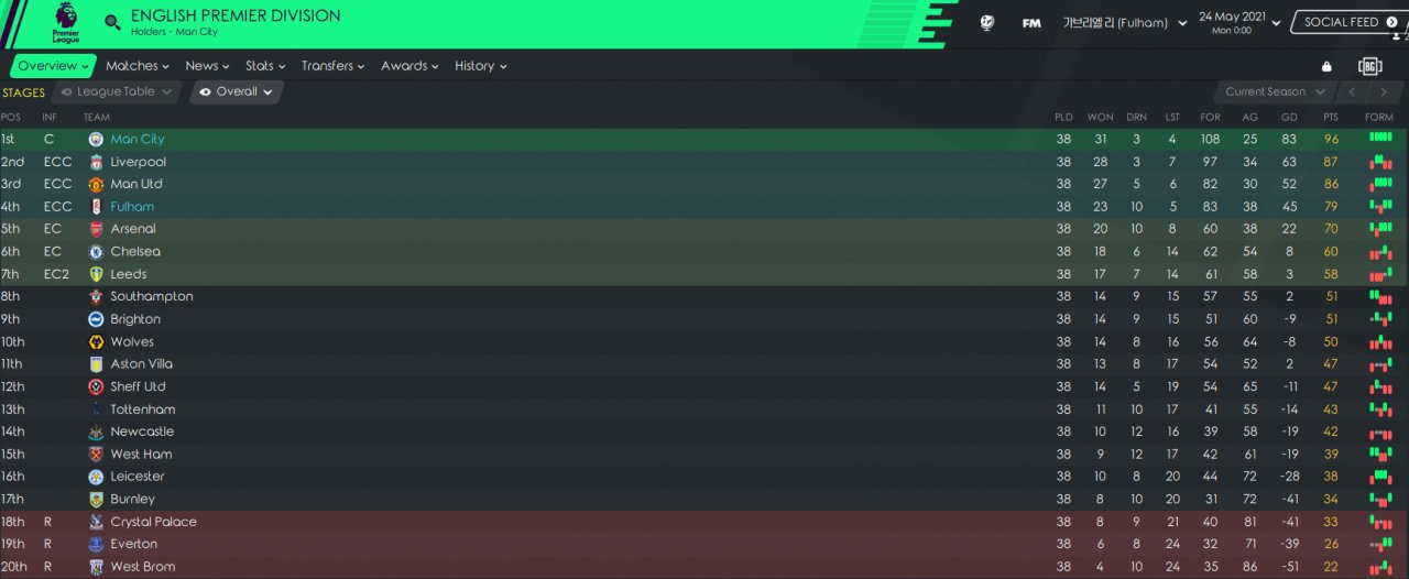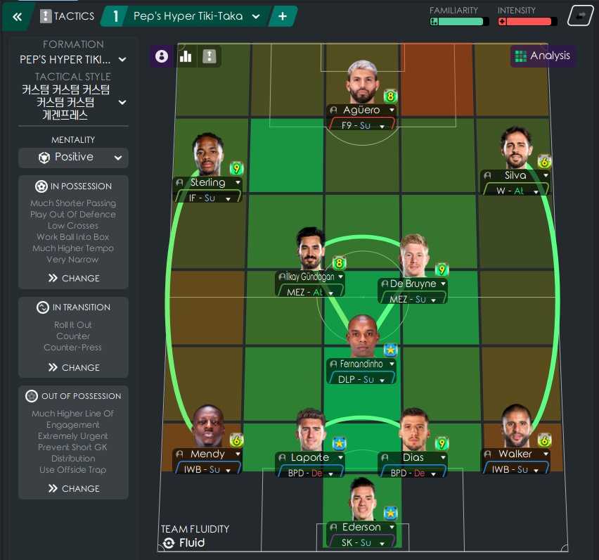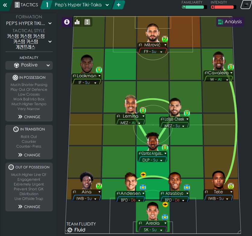 I tried to create Pep Guardiola's tactic with short pass build-ups using effective instructions of Football Manager. It works not only with ManCity, but also with Fulham which got UCL spot.