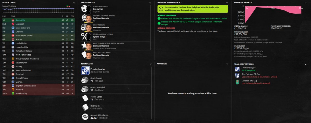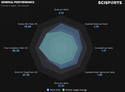 As you can see from the general performance screenshot, Villa out performed all the league averages which for a team who are predicted 18th, is very impressive.