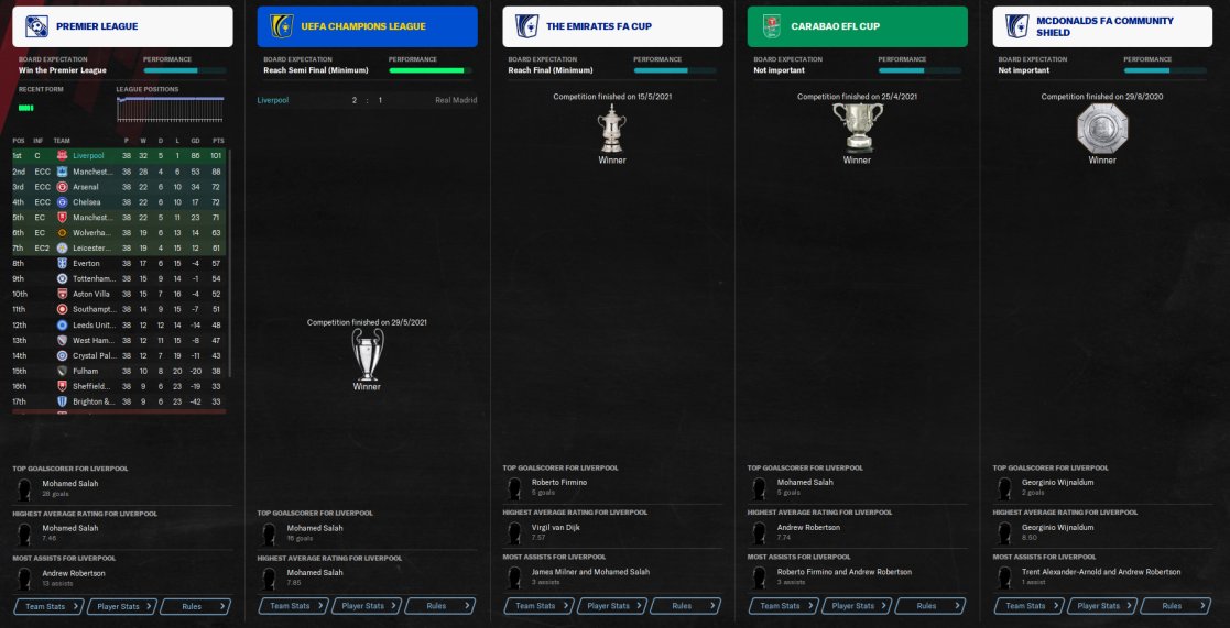 The Liverpool was not as devastating but still impressive as they won all the trophies on offer just as did PSG, 96 points in the league with only 2 defeats. Ranked top for goals scored and conceded. Only 18 conceded in the league.