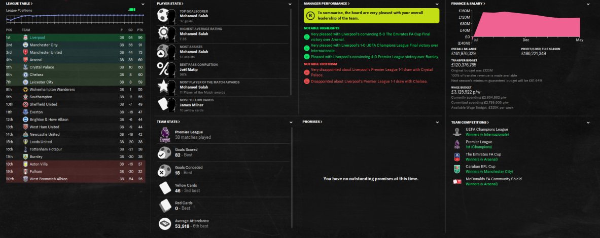 The Liverpool was not as devastating but still impressive as they won all the trophies on offer just as did PSG, 96 points in the league with only 2 defeats. Ranked top for goals scored and conceded. Only 18 conceded in the league.