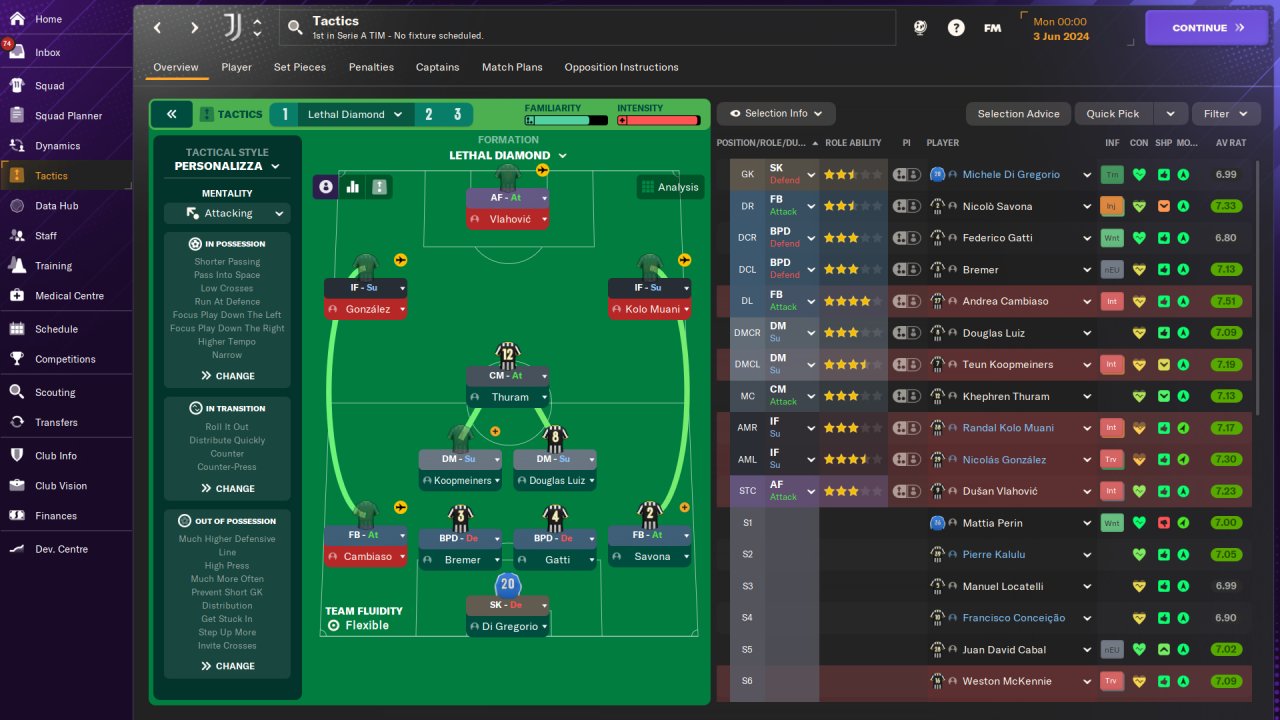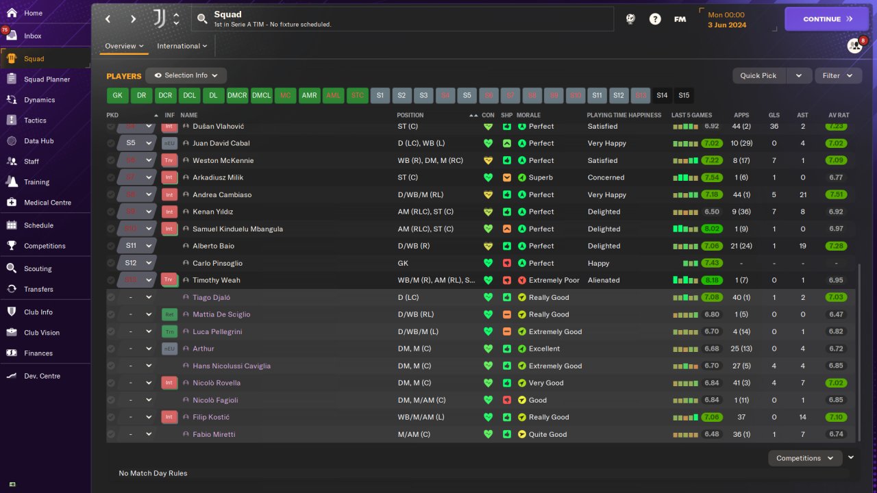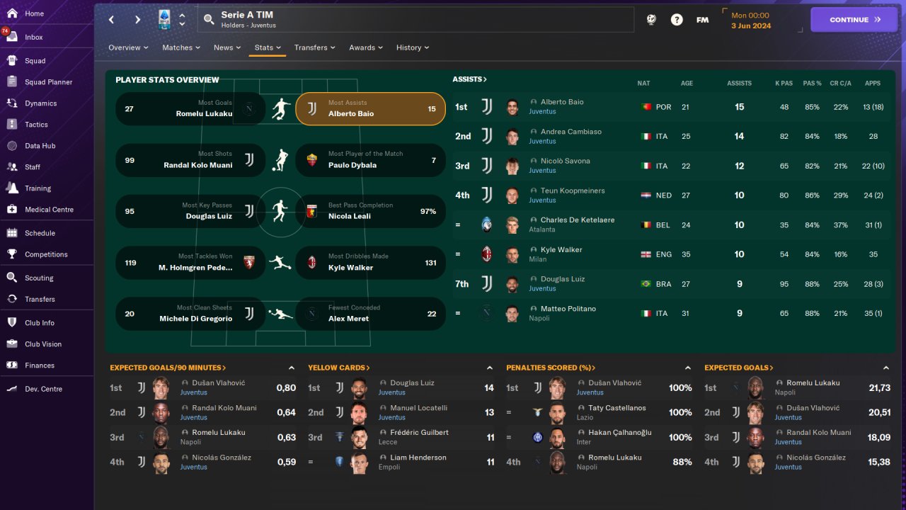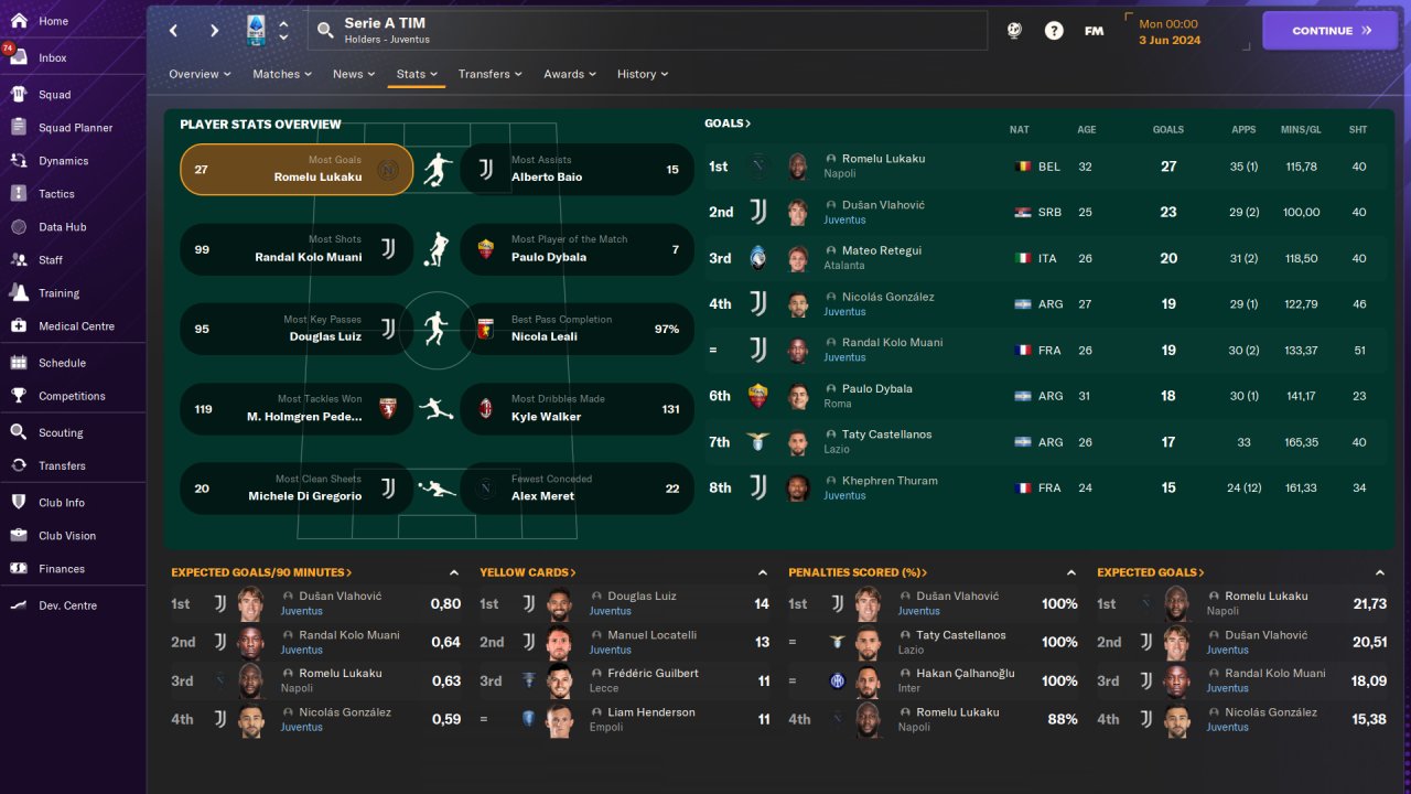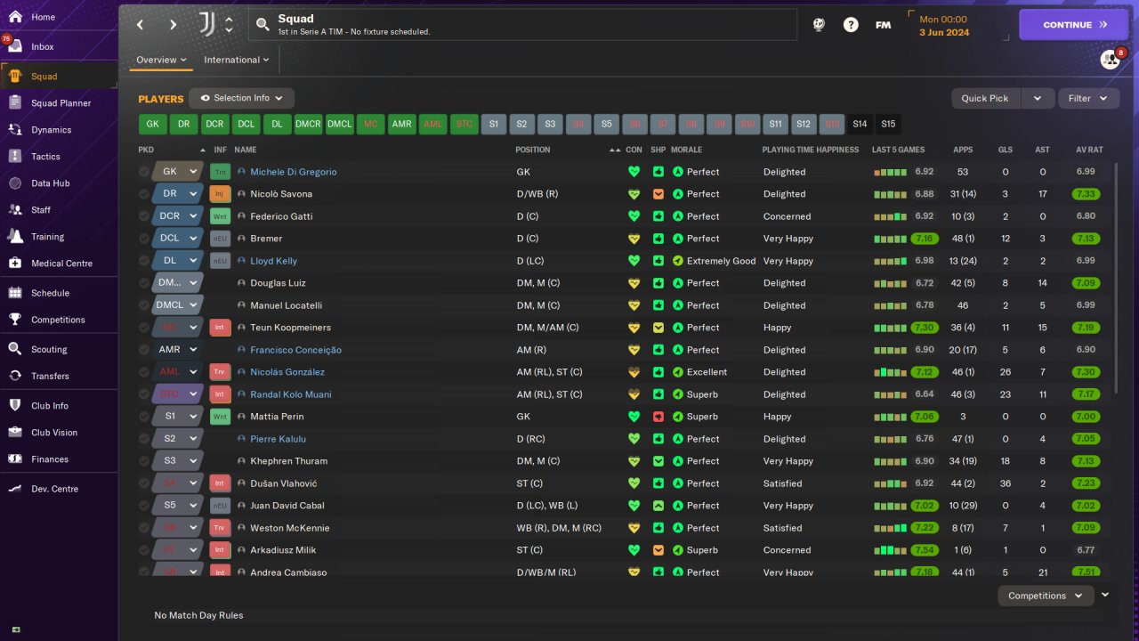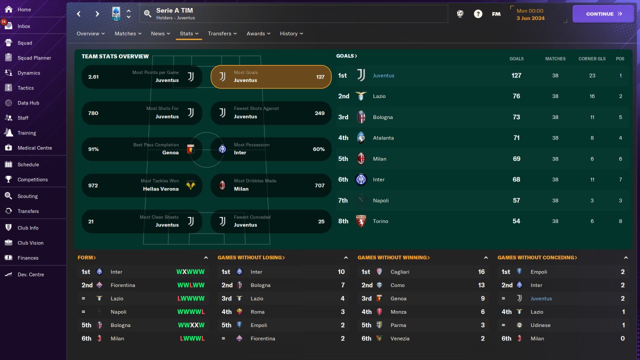 Played entirely on holiday mode, won the Serie A and Champions League with Juventus in the first season, no signings.