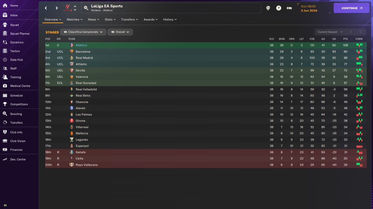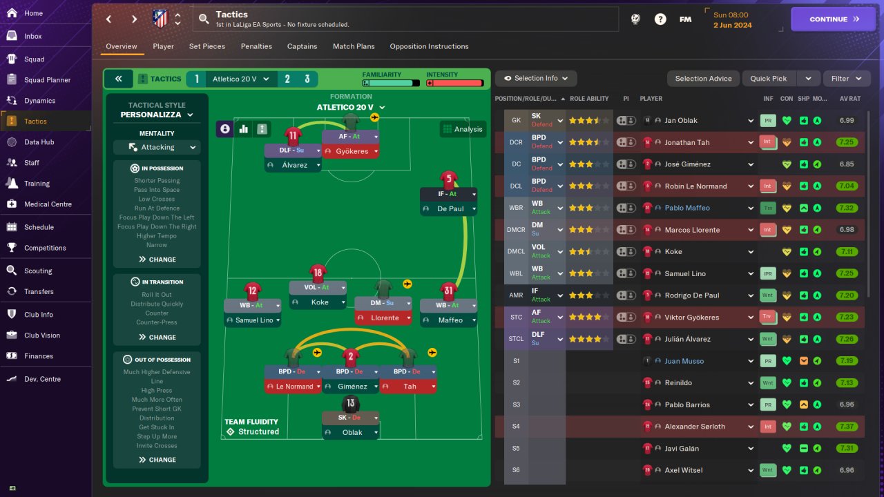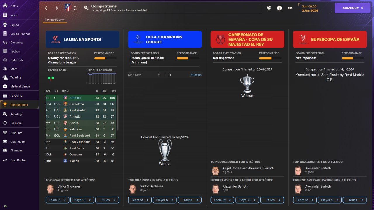 Atletico Madrid first season treble (La Liga, Copa Del Rey, Champions League) 108 points in the league. A high tempo asymmetric 3-4-1-2.