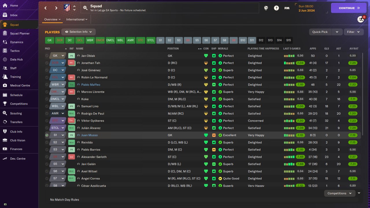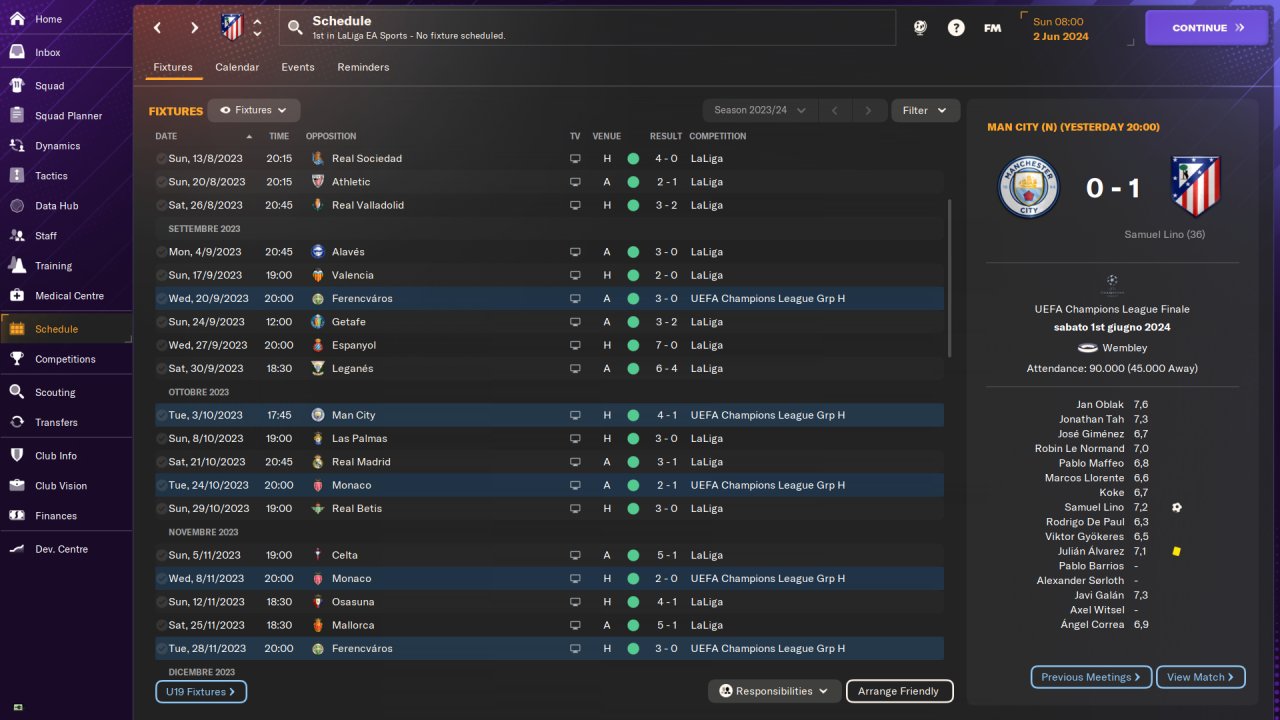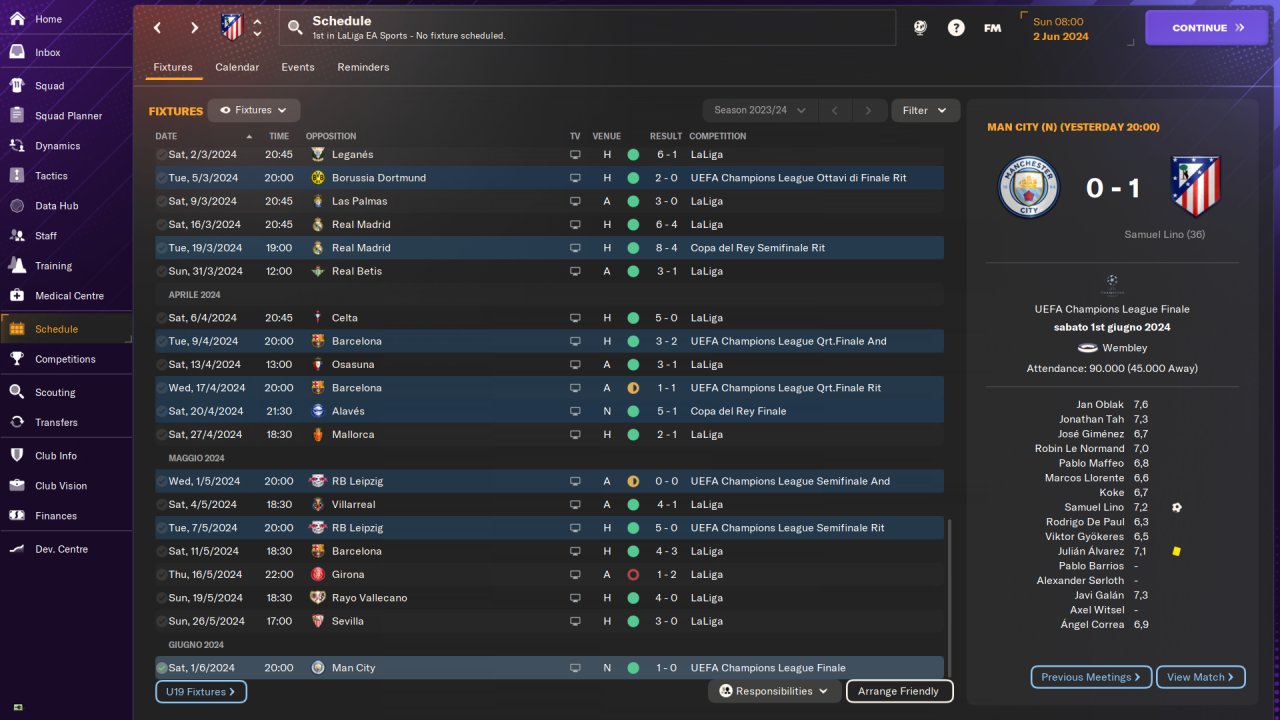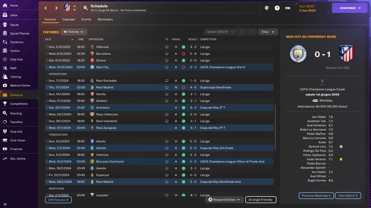 Atletico Madrid first season treble (La Liga, Copa Del Rey, Champions League) 108 points in the league. A high tempo asymmetric 3-4-1-2.