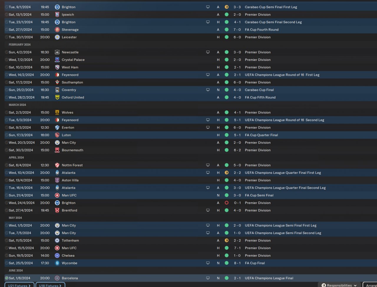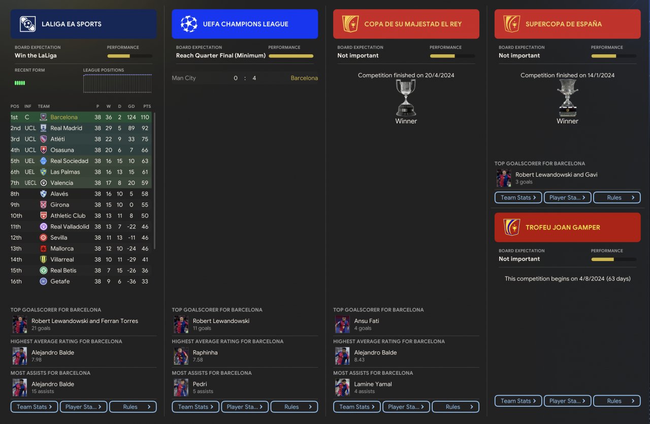 Just wanted to share my results with this tactic. First season with Barcelona, quadruple and undefeated in the league too! Also I only conceded 18 goals whilst scoring 142 goals in the league.