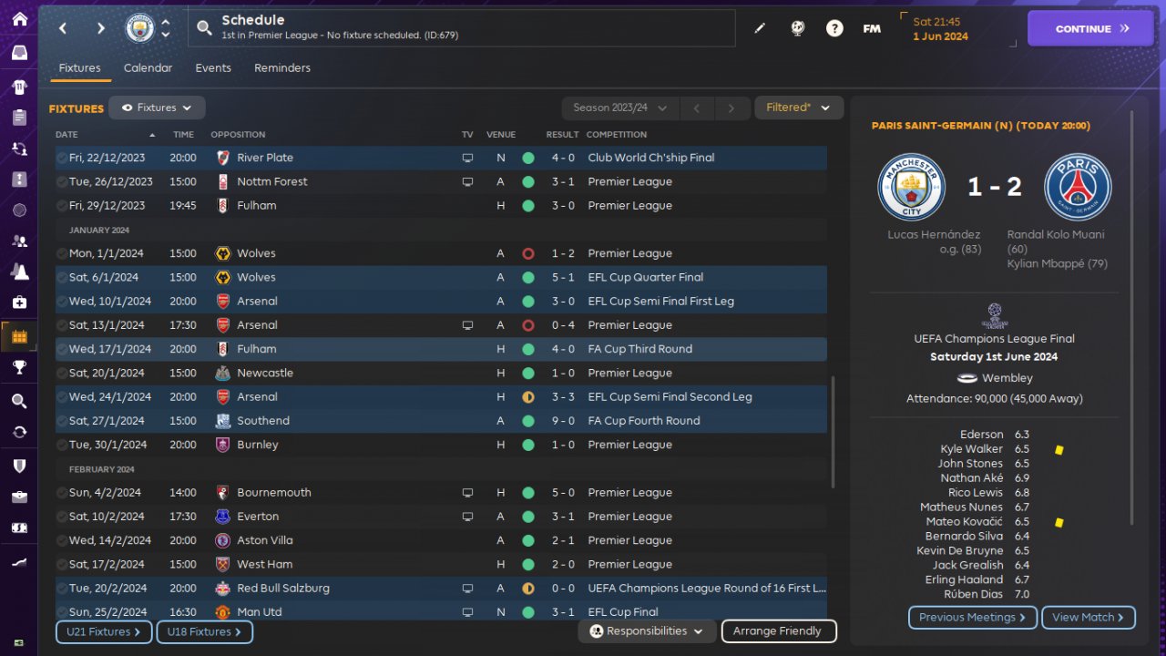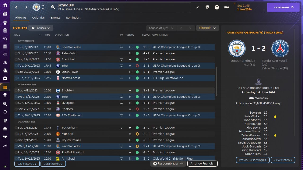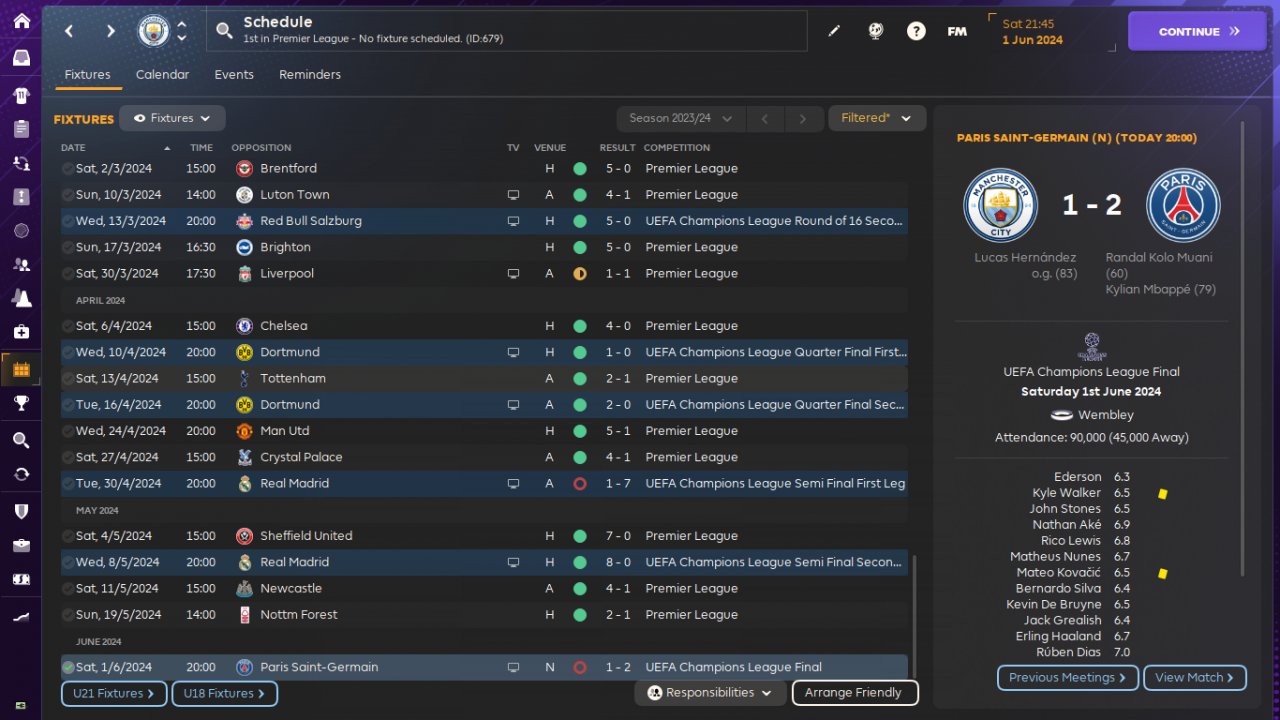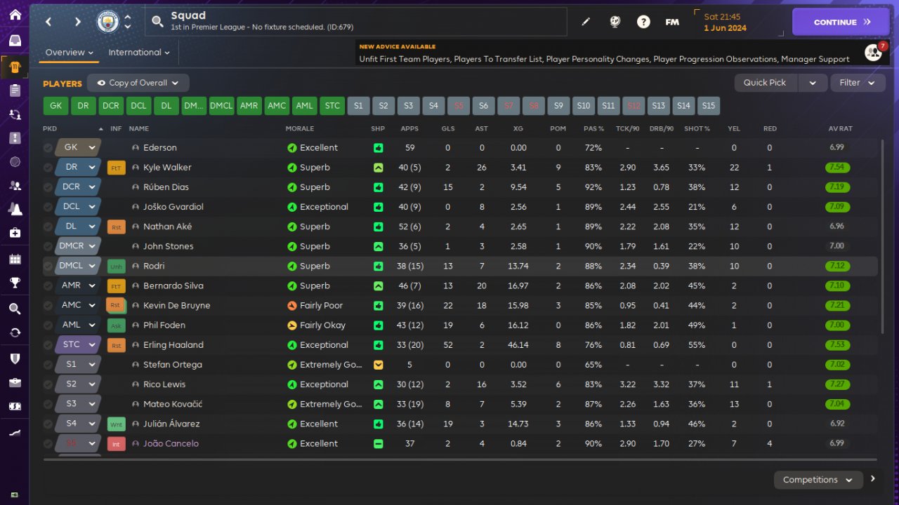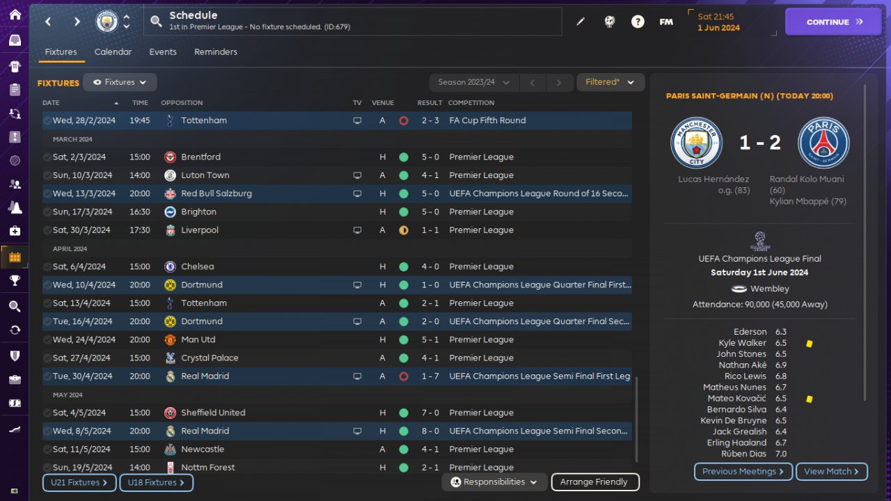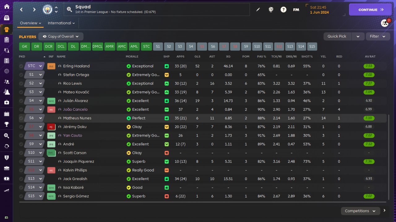 Delegated nearly every tasks, except set pieces and opposition instructions (I used https://www.fmscout.com/c-fm24-tactics.html?id=12102 for attacking corners, others just followed staff recommendations).