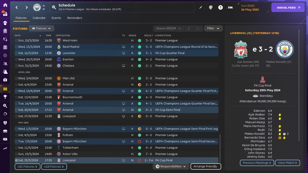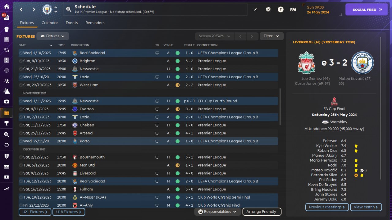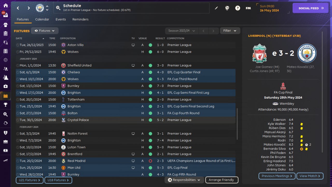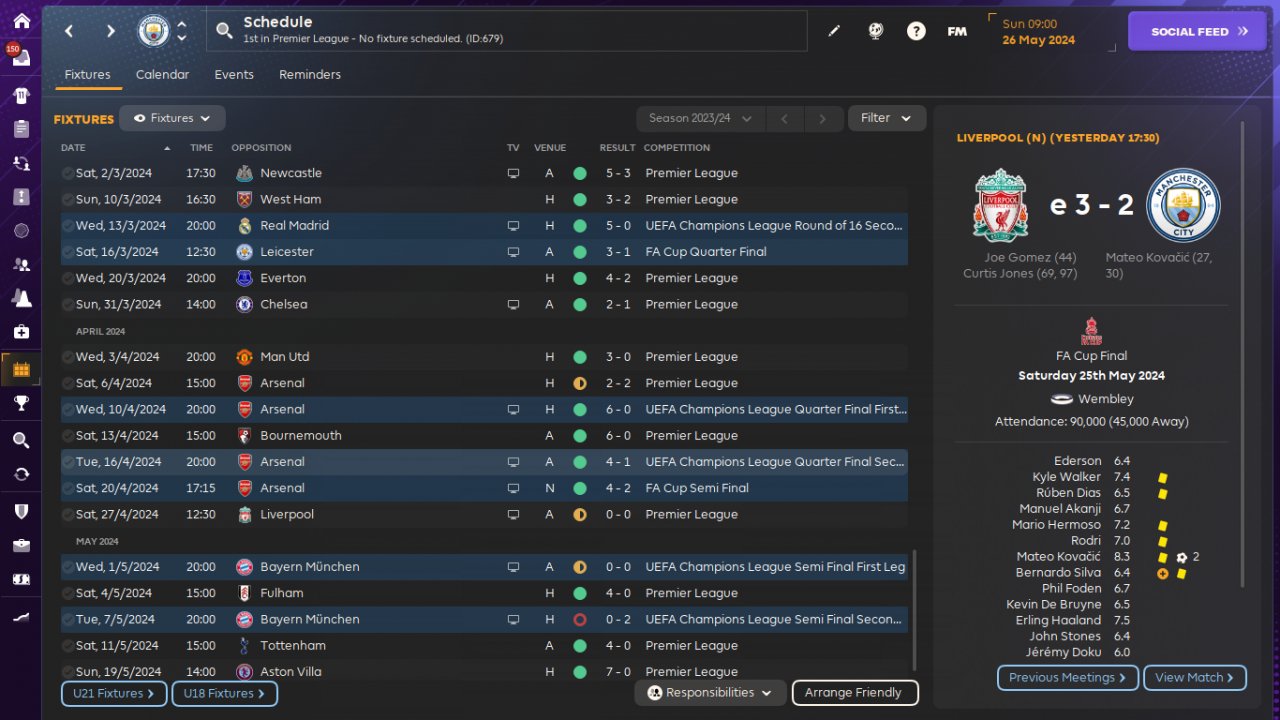 Delegated nearly every tasks, except set pieces and opposition instructions (I used https://www.fmscout.com/c-fm24-tactics.html?id=12102 for attacking corners, others just followed staff recommendations).