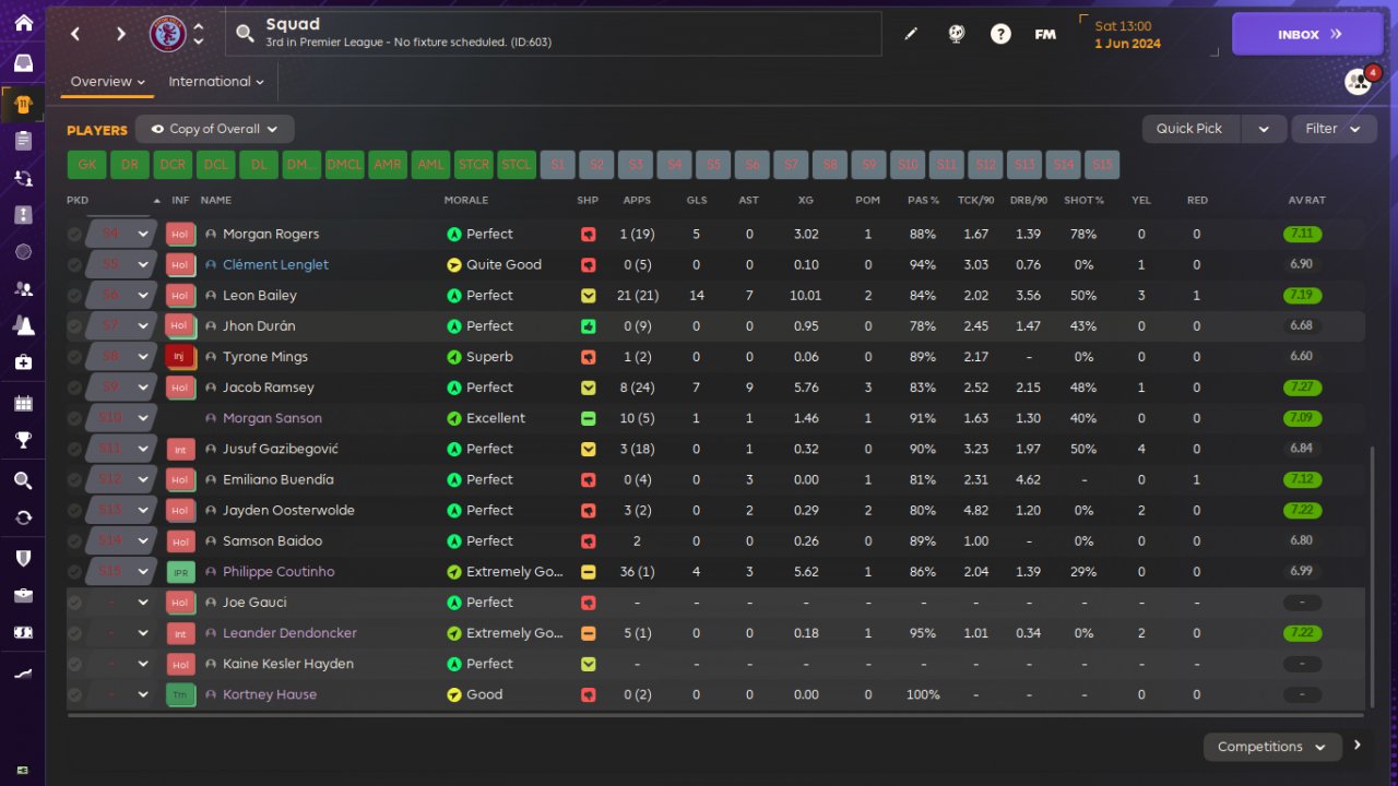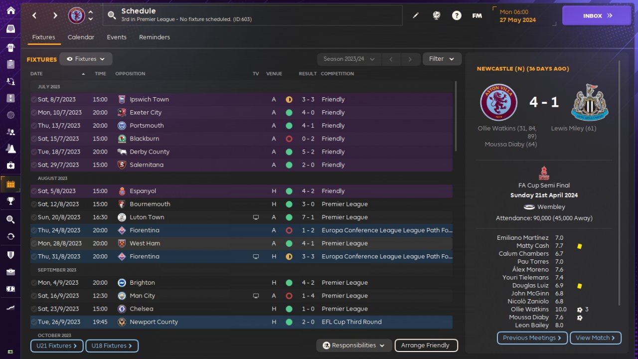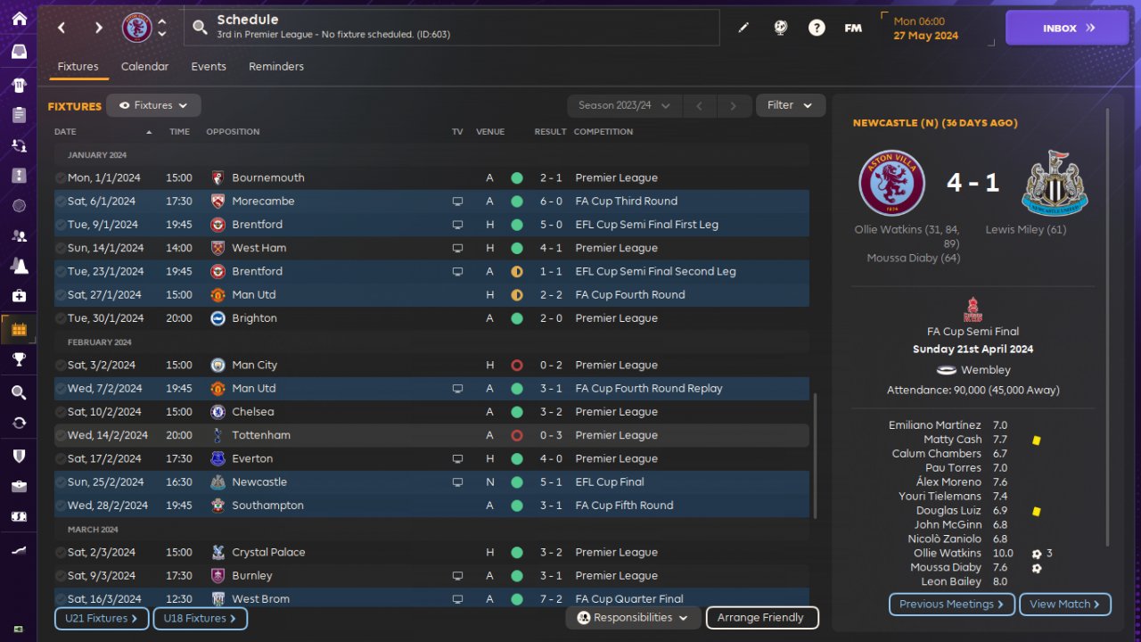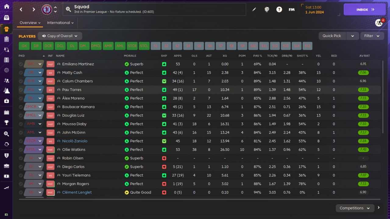 Aston Villa save, attacking corners using https://www.fmscout.com/c-fm24-tactics.html?id=12102.