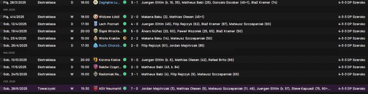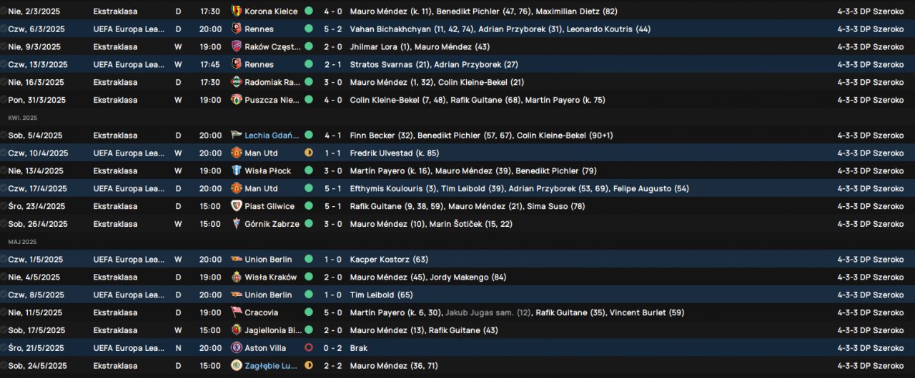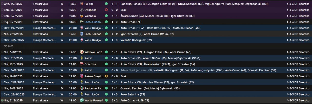 While searching for the right tactic, I came across yours, and I have to say — it’s probably the best tactic for FM24. Managing Pogoń Szczecin, I reached the UEFA Conference League final after eliminating Man Utd 1-1 (A) and 5-1 (H). I lost the final to Aston Villa 0-2, but I did win the Polish Championship.