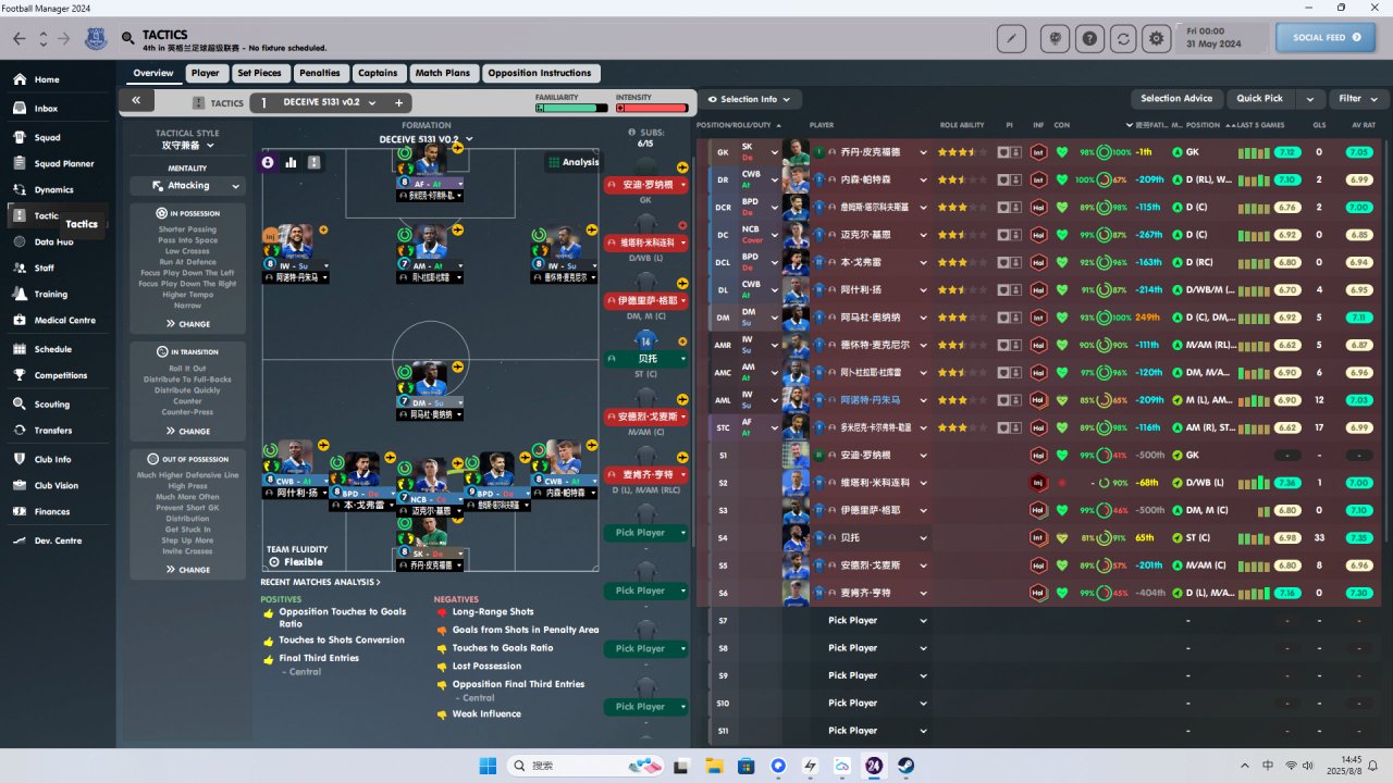 Always on vacation, both offensive and defensive, with a five defender formation