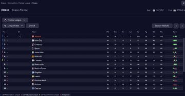 I managed Arsenal with this tactic for two consecutive seasons, achieving over 100 league points each time. To test the consistency of the system, I also ran full-season simulations with Chelsea and Sunderland. Chelsea finished 3rd (with an expected points ranking of 1st), while Sunderland finished 10th (expected points ranking 6th).